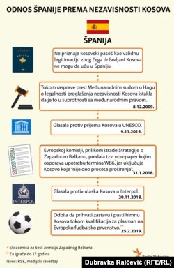 "Prvi je taj da se Kosovo ponašalo veoma odgovorno tokom katalonske krize 2017. godine. Drugi je da bi Madrid želeo postići rešenje o tom pitanju, što je pre moguće, jer je njihova relativna izolacija kao države koja nije priznala Kosovo štetna za španski uticaj u vanjskom delovanju EU. A treći je da su svi, uključujući Srbiju, došli do zaključka da nema vraćanja Kosova nazad unutar granica Srbije, te da trenutni zastoj nije održiv, kao i da je potrebno posredovanje u regionalnom kompromisu (uključujući Kosovo kao članicu UN-a i Srbiju kao punopravnog kandidata za pridruživanje EU)", komentariše Molina za RSE.
