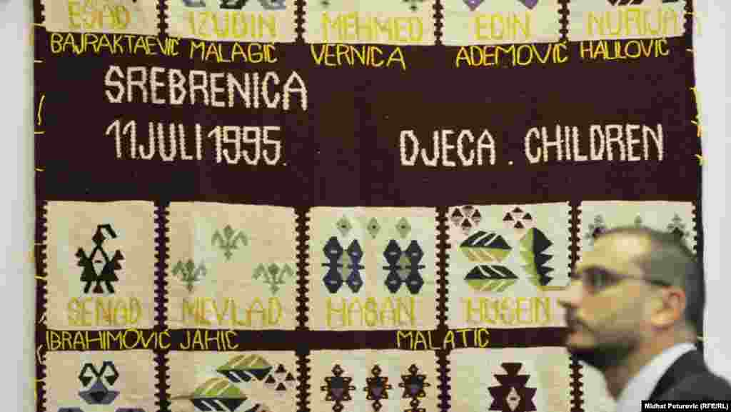 Tradicijom protiv zaborava, cilj je izložbe koja je otvorena u Domu oružanih snaga BiH u Sarajevu. Posjetioci će do 30. juna imati priliku pogledati 12 ćilima na kojima je ispisano više od 300 imena žrtava srebreničkog genocida. Ćilime je istkalo 50 žena. Sarajevo, 28. juni 2012.