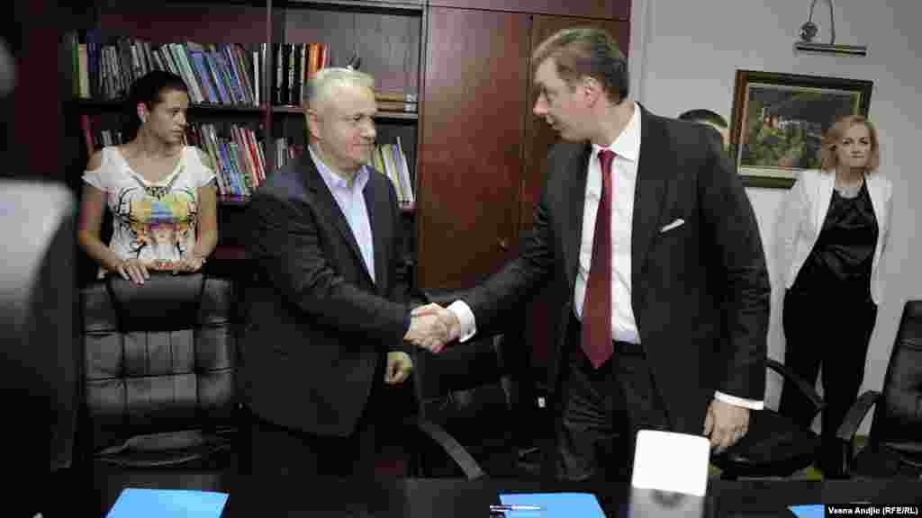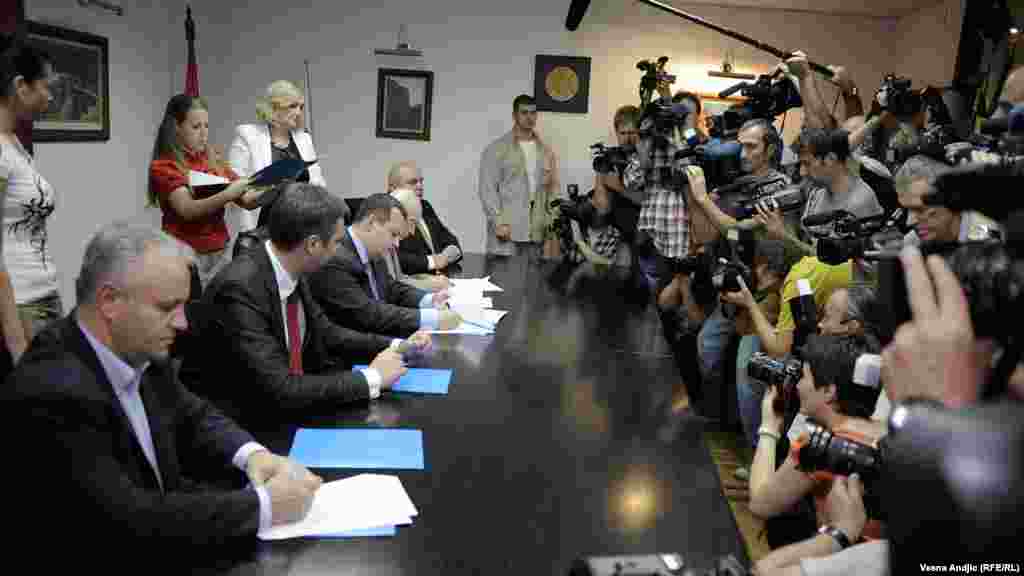Srpska napredna stranka, Socijalistička partija Srbije (SPS), PUPS, Jedinstvena Srbija i Ujedinjeni regioni Srbije (URS) potpisali su 10. jula Sporazum o formiranju parlamentarne većine. FOTO: Vesna Anđić