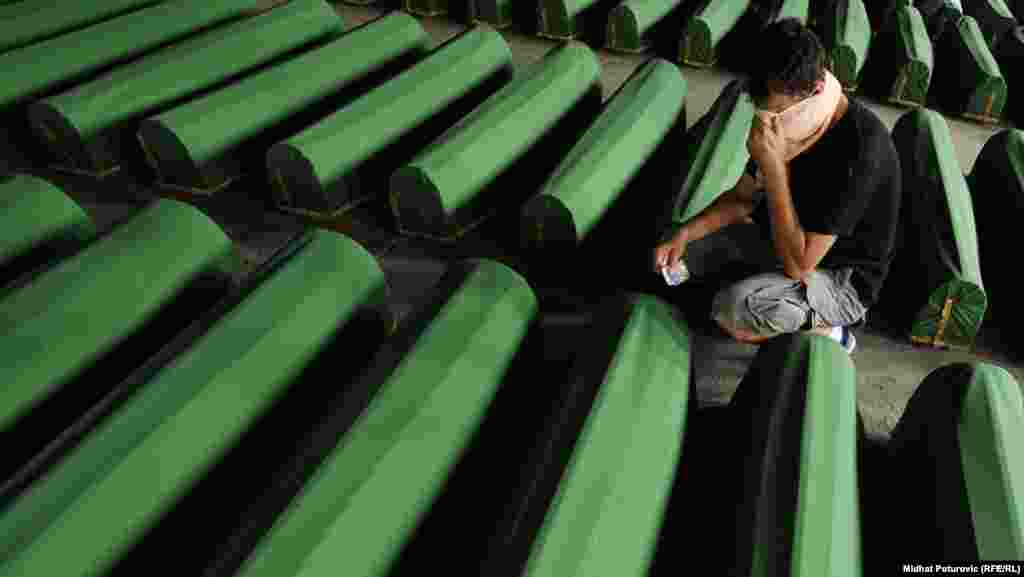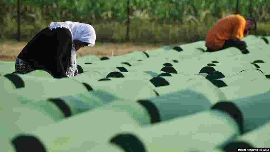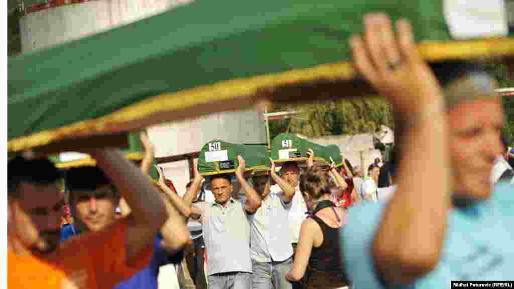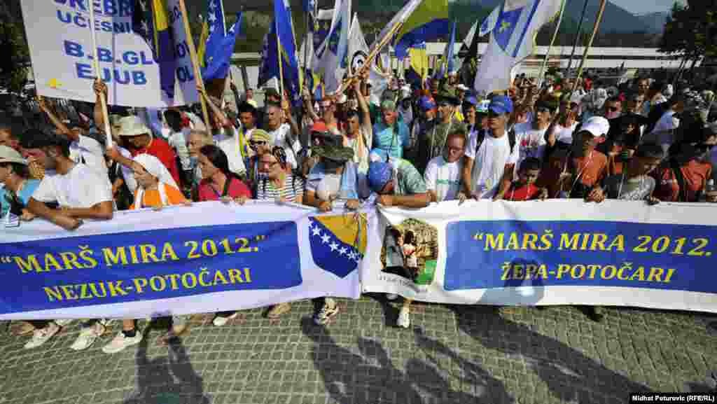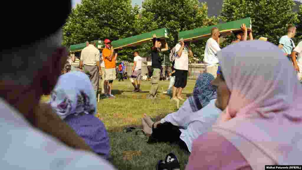 U Srebrenicu je pristiglo nekoliko hiljada ljudi uključujući i učesnike Marša mira i članove porodica, prijatelje i poznanike žrtava koji će 11. jula prisustvovati ukopu 520 Bošnjaka ubijenih u genocidu jula 1995. godine. 10. jul 2012. Foto: Midhat Poturović