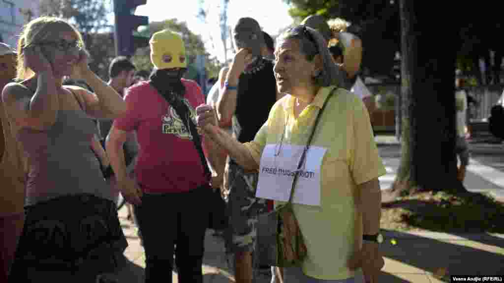 Nekoliko desetina ljudi u Beogradu pridružilo se svetskim prestonicama u protestima podrške osuđenim članicama ruskog punk benda Pussy Riot. Iako je skup prethodno otkazan zbog pretnji ultradesničarskih organizacija, minut ćutanja za „mrtvu slobodu govora u Rusiji i Srbiji“, ipak je održan u prisustvu velikog broja policajaca. 17.8.2012. RSE foto/Vesna Anđić