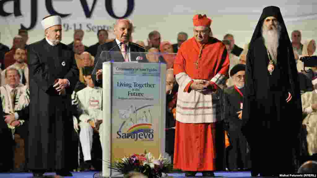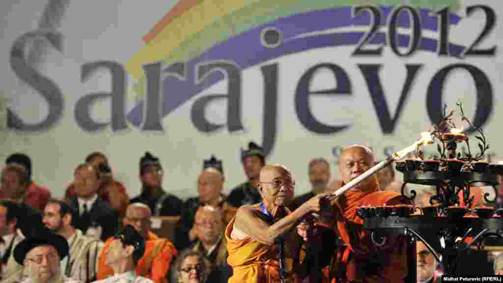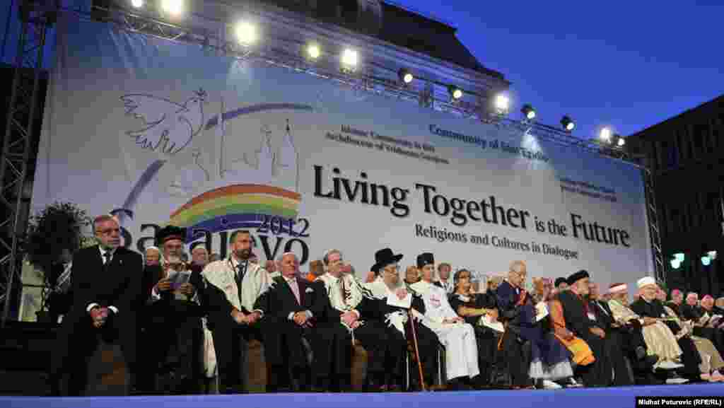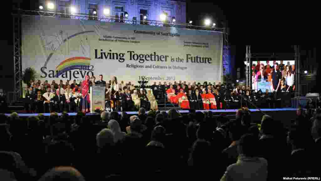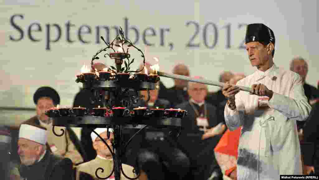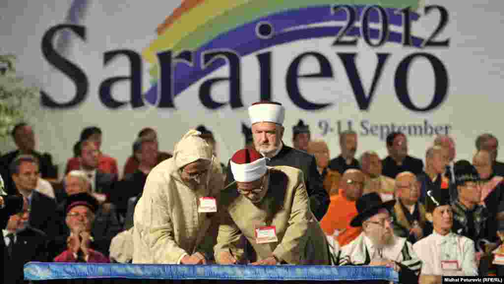 U prisustvu vjerskih lidera i građana, paljenjem svijeća i potpisivanjem "Apela za mir“ u Sarajevu je svečano završena Međunarodna međureligijska konferencija "Naša je budućnost živjeti zajedno: Religije i kulture u dijalogu", koja je trajala tri dana. 11. septembar 2012. Foto: Midhat Poturović