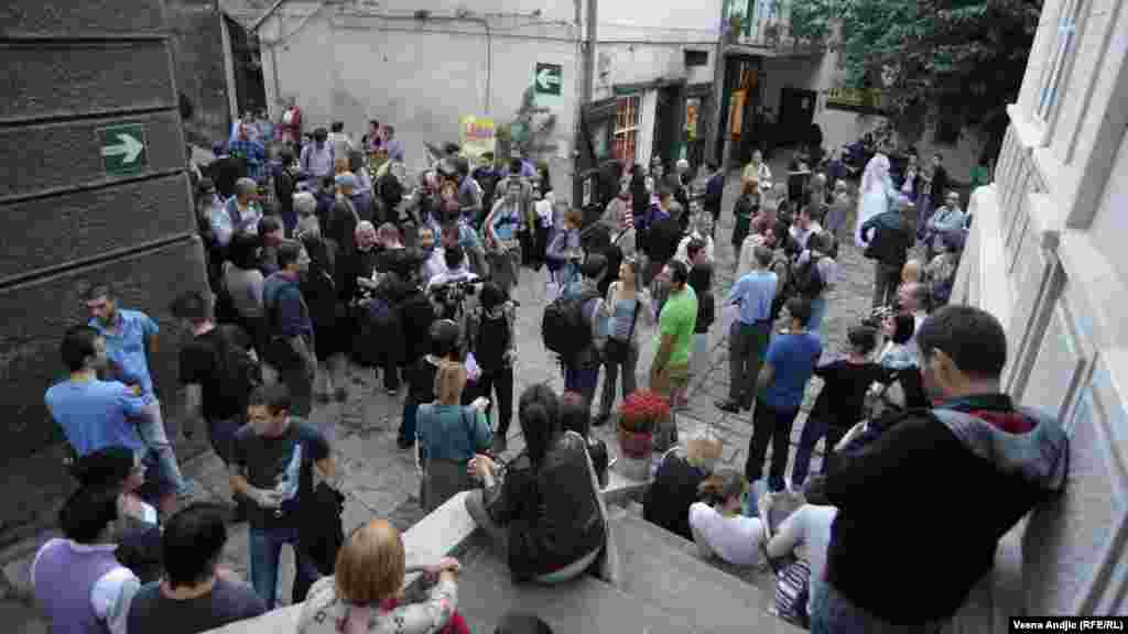Pošto su, uz pomoć SPC, ali i države, uspeli da zabrane Paradu ponosa planiranu za subotu, ultradesničari zapretili su da sprečiti i otvaranje izložbe švedske umetnice u okviru Pride week-a. No, dalje od ograde, ipak, nisu stigli. 3. oktobar 2012.