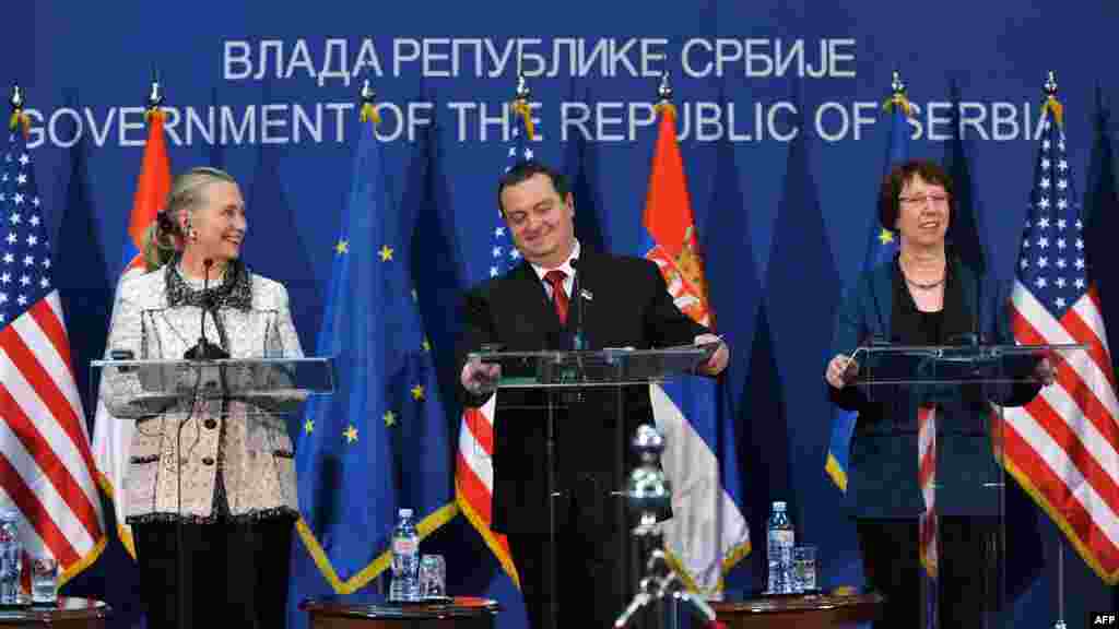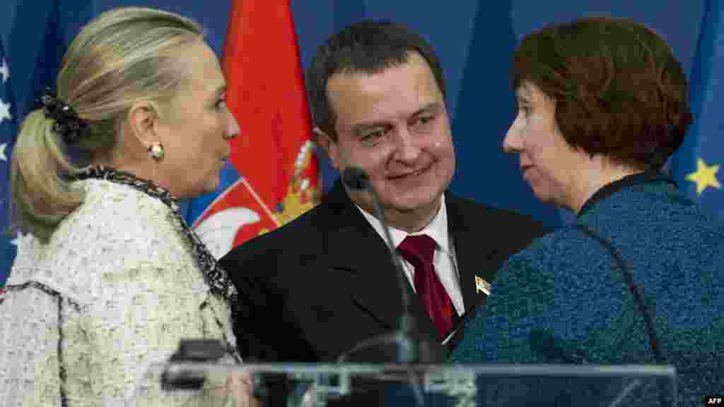 Državna sekretarka SAD Hilari Klinton i visoka predstavnica Evropske unije Ketrin Ešton, nakon BiH, posetile su Srbiju gde su se susrele sa predsednikom Tomislavom Nikolićem i premijerom Ivicom Dačićem. Nakon Beograda, Balkansku turneju nastavljaju u Prištini.
