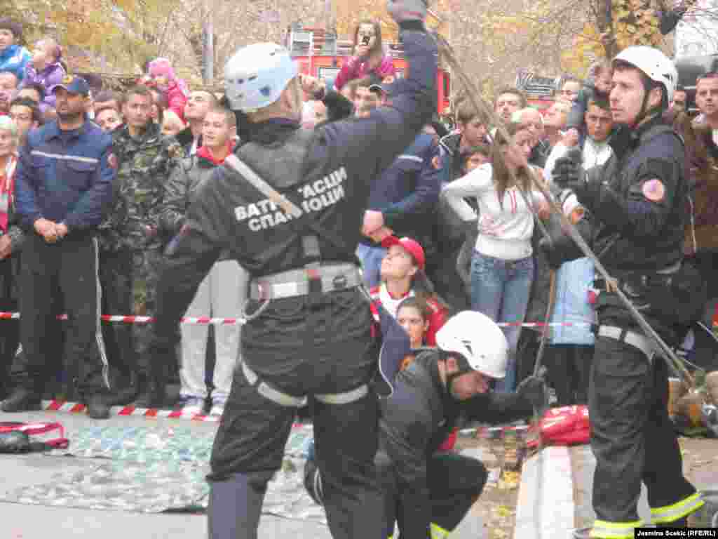 Pripadnici Civilne zaštite severne Mitrovice održali su u nedelju pokaznu vežbu za spasavanje ljudi u slučaju požara u severnom delu grada. Tom prilikom, pokazali su pred mnogobrojnim građanima svoju opremljenost i obučenost za delovanje u vanrednim situacijama. Pokaznu vežbu Civilne zaštite u severnoj Mitrovici organizovala je Kacelarija za Kosovo Vlade Srbije. FOTO: Jasmina Šćekić