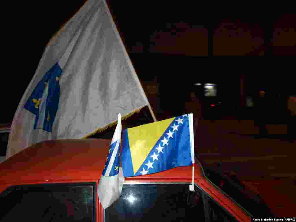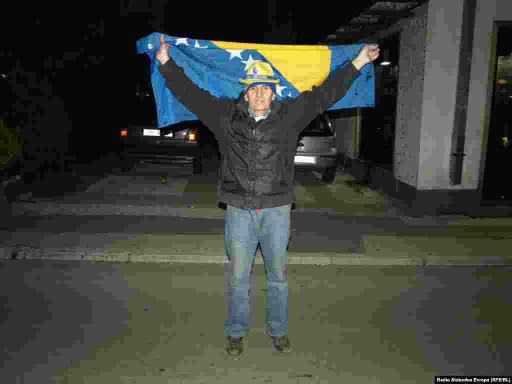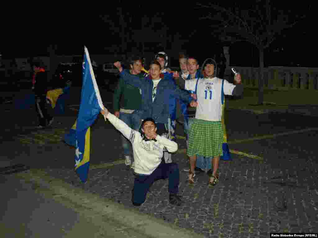 Bosnia-Herzegovina - Bosnia-Greece, 2014 World Cup qualifying soccer match in Zenica, fans celebrating victory, Mostar, 22Mar2013