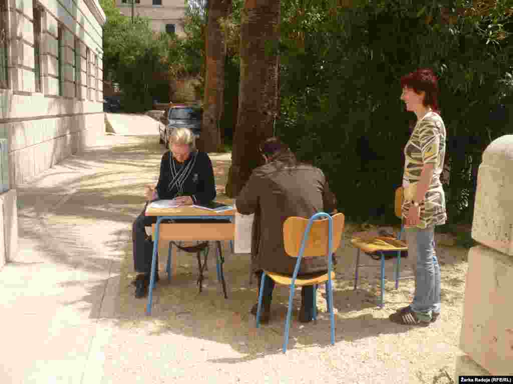 U Dubrovniku se u nedjelju od 7 do 19 sati održava referendum na kojem građani odlučuju žele li na brdu Srđ iznad grada izgradnju sportsko-turističkog kompleksa dvojbenih sadržaja, ili da se odbijanjem ovog projekta da mogućnost nekom drugačijem projektu koji bi u većoj mjeri uvažavao javni interes. 28. april 2013. FOTO: Žarka Radoja
