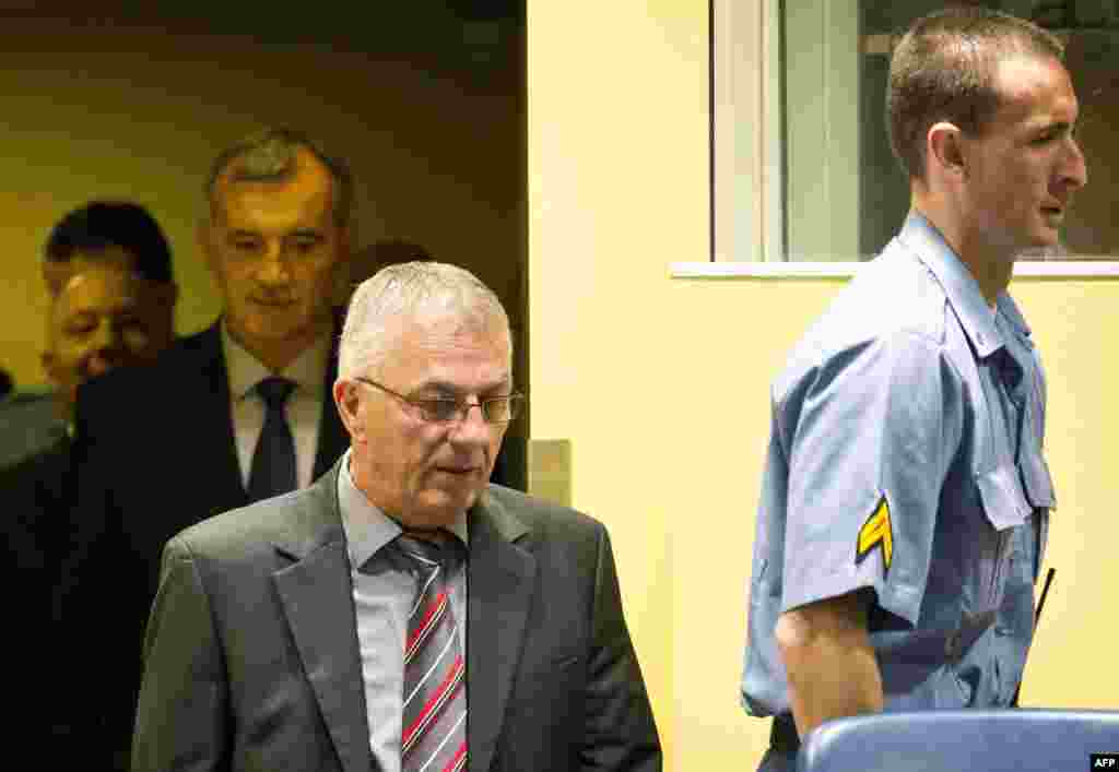 Milivoj Petković (L) i Slobodan Praljak ulaze u sudnicu neposredno prije izricanja presuda, Hague, 29. maj 2013. Foto: AFP / Jiri Buller