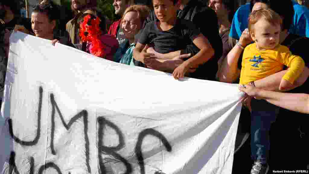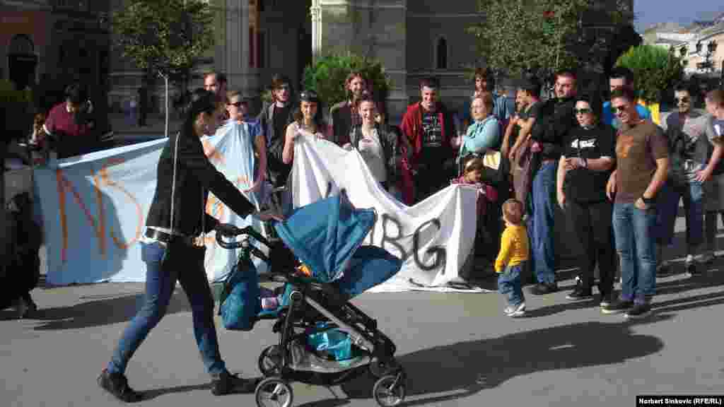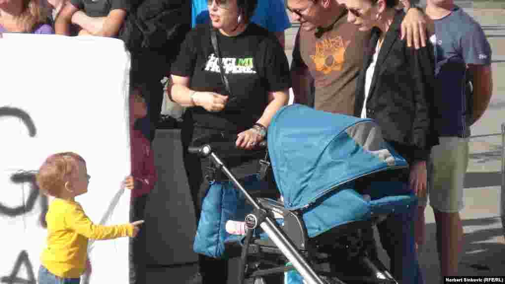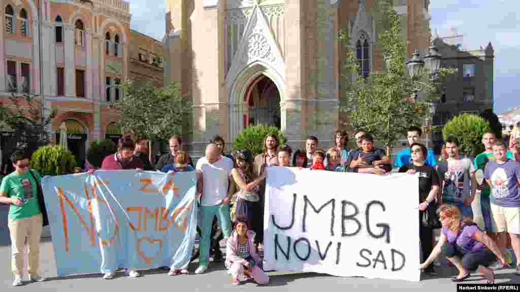 Novom Sadu je održan skup podrške građanima Sarajeva koji već danima traže rešavanje problema izdavanja matičnih brojeva novorođenčadima. Foto: RSE / Norbert Sinković, 11. juni 2013.