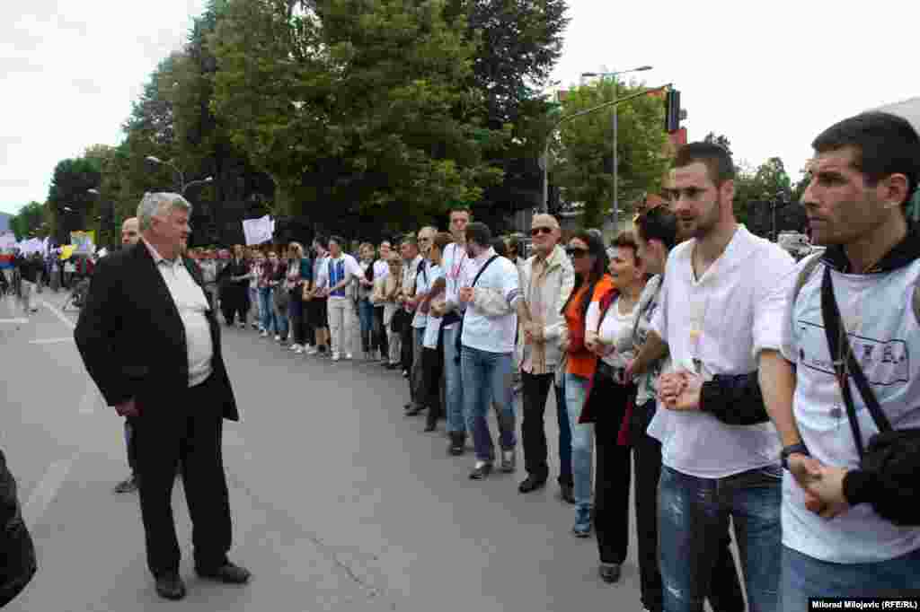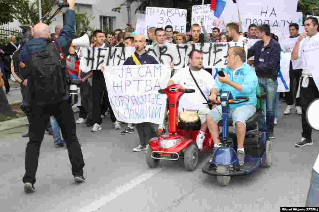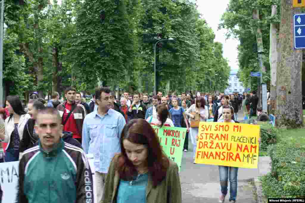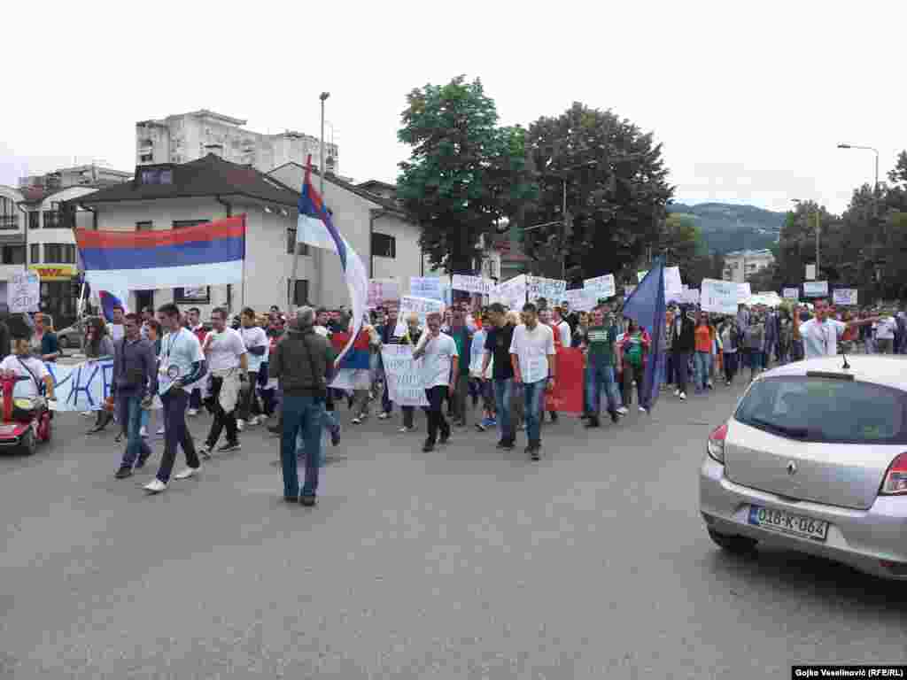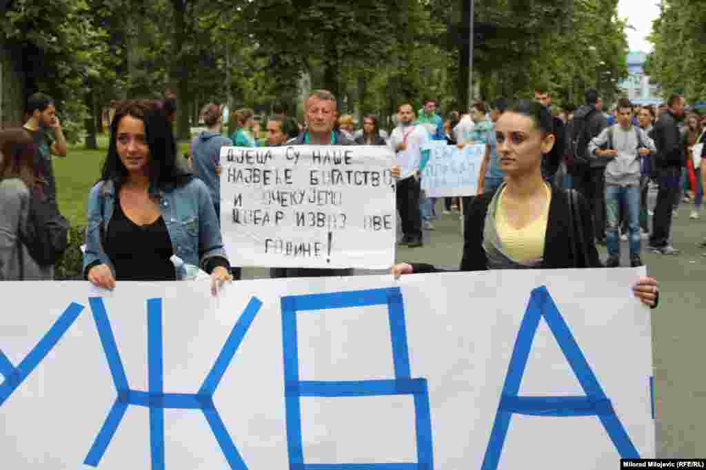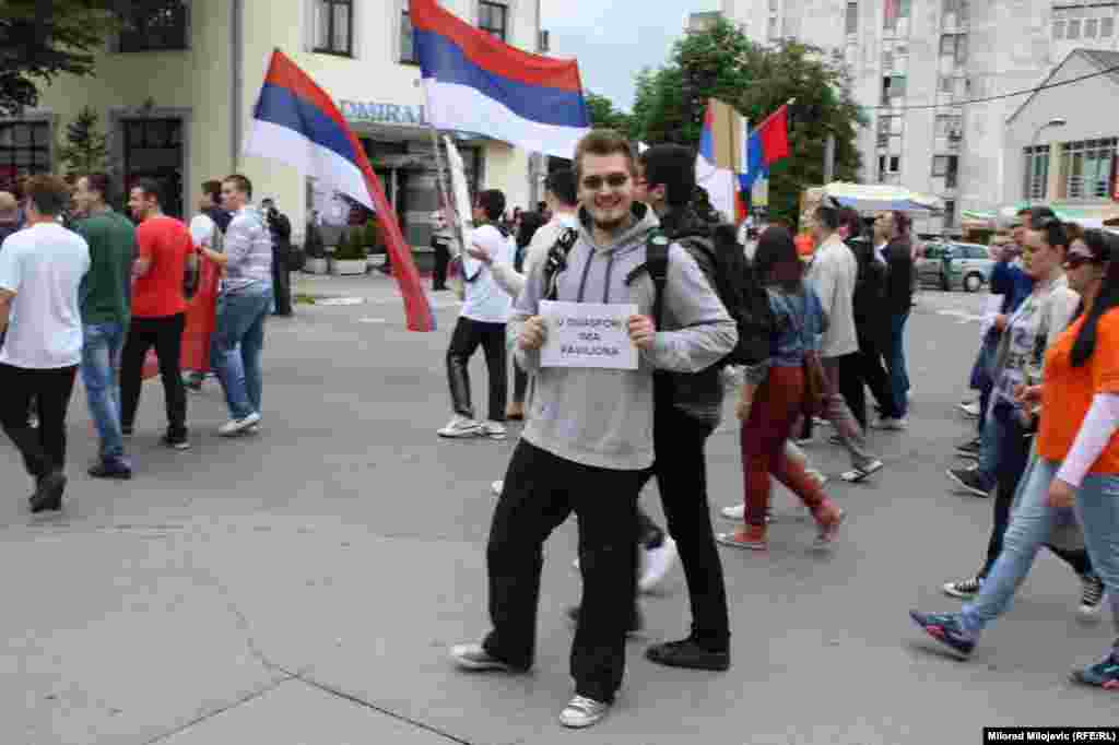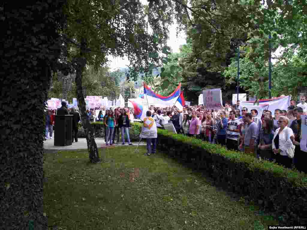 Nekoliko hiljada banjalučkih studenata, aktivista, sindikalista, demobilisanih boraca, invalida, penzionera i nezadovoljnih građana okupilo se nakon šetnje pred zgradom Vlade RS, gdje ih je dočekalo oko 300 stotine demonstranata. Studenti, između ostalog, traže da vlast konačno krene u odlučnu borbu protiv kriminala, korupcije i nepotizma u društvu i da počne da radi u interesu građana a ne samo da se brine o ličnim interesima i interesima tajkuna. FOTO: Gojko Veselinović, Milorad Milojević