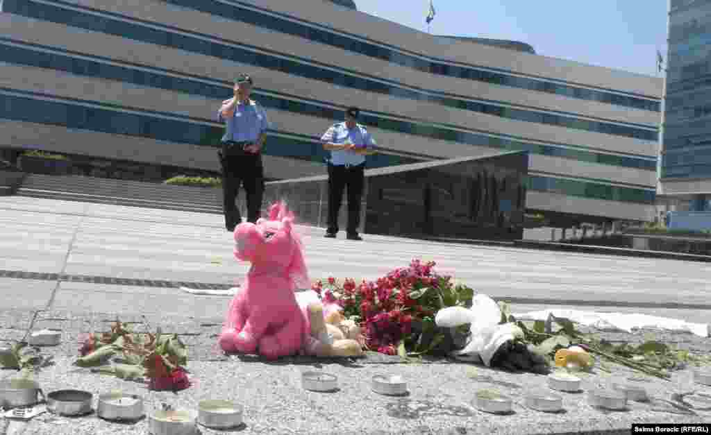 U ponedjeljak je sahranjena tromjesečna beba iz Sarajeva koja je, pošto nije imala matični broj, uz velike teškoće prebečana na liječenje u Beograd. Građani su pred državnim parlamentom odali počast Berini minutom šutnje. 17. jun 2013. (Foto: Selma Boračić)