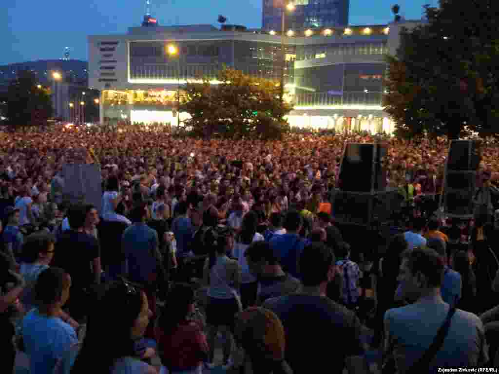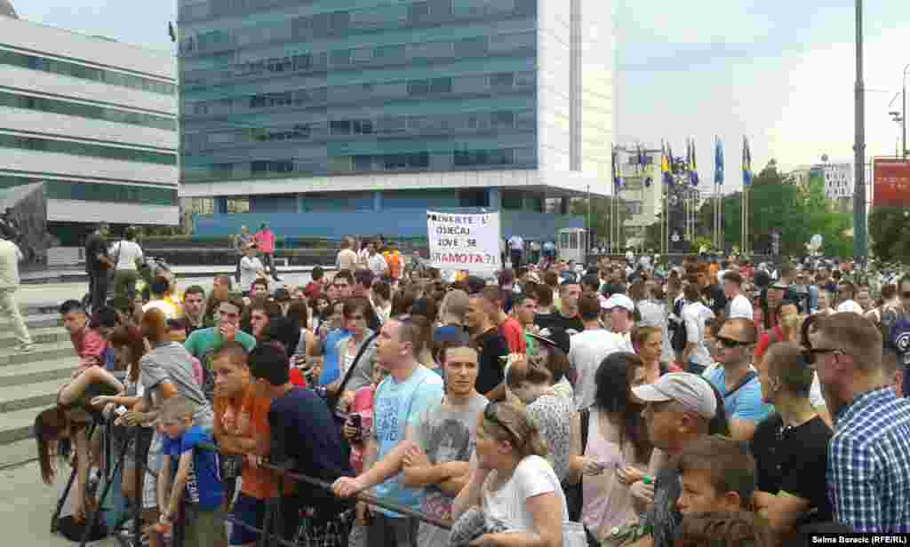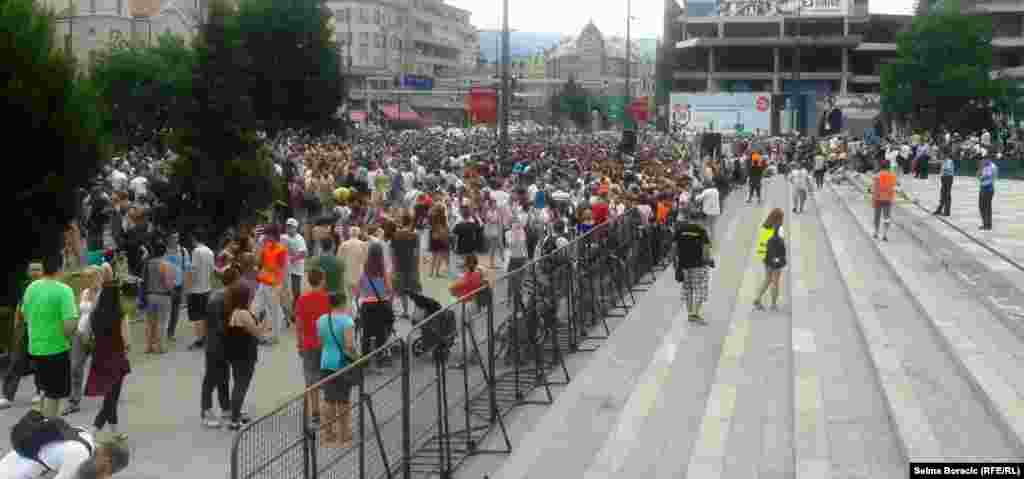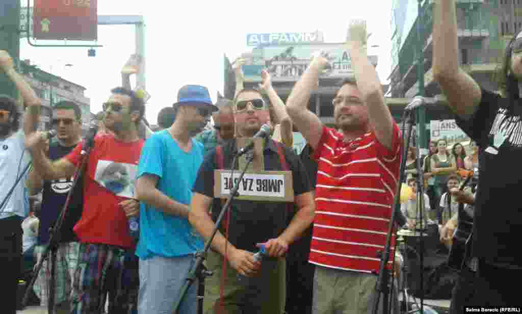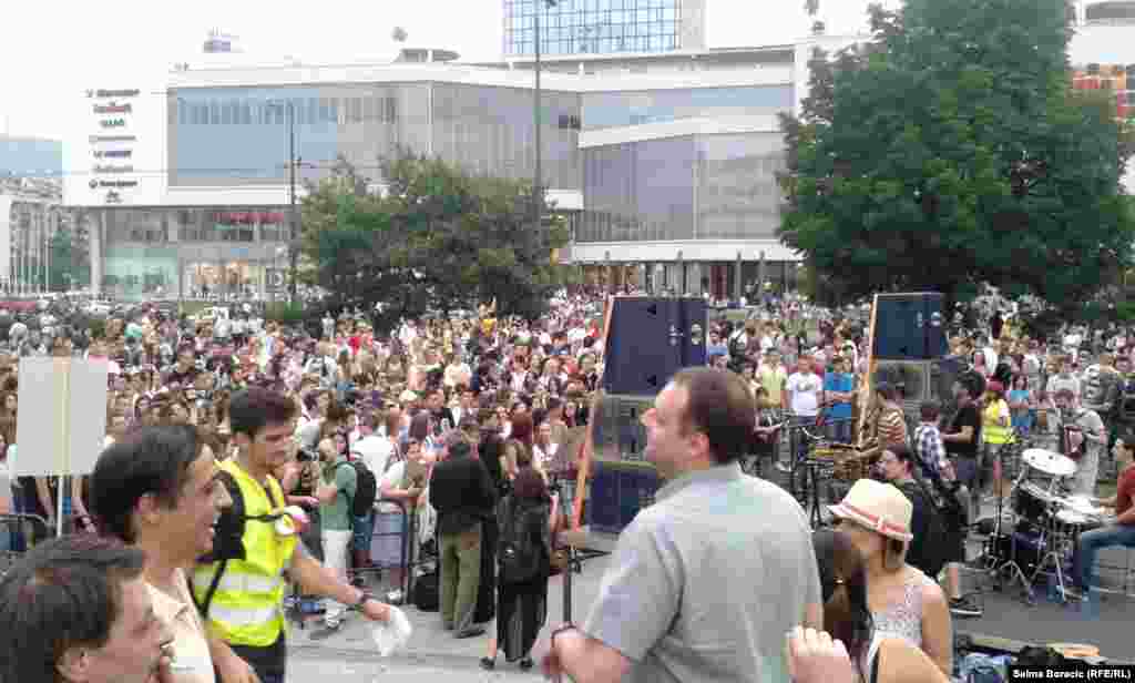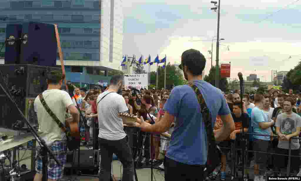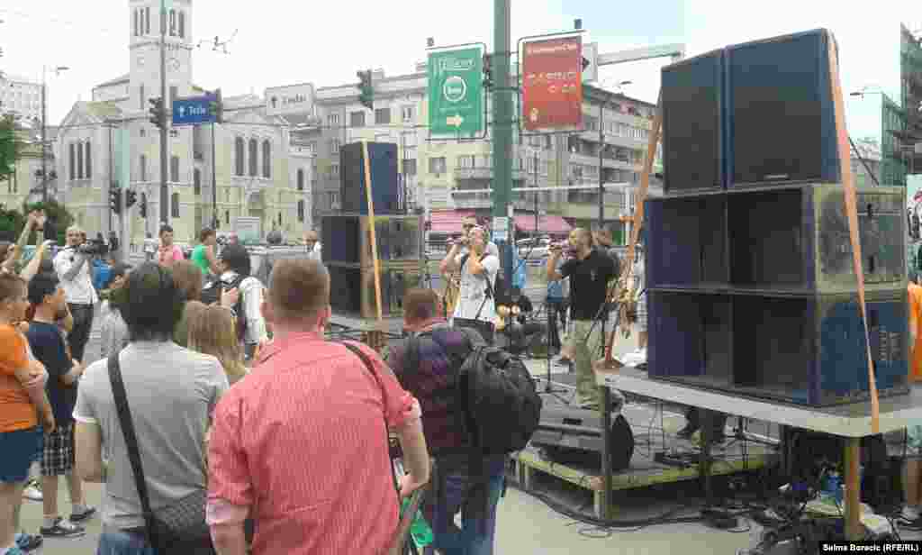 Devet bh. bendova nastupa u utorak poslijepodne ispred zgrade Parlamenta BiH na muzičkom protestu protiv neusvajanja trajnog zakona o jedinstvenom matičnom broja građana. 18. jun 2013.