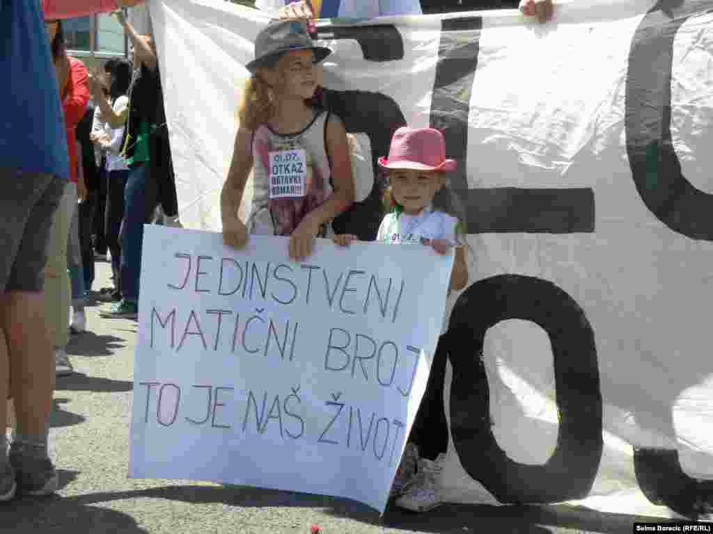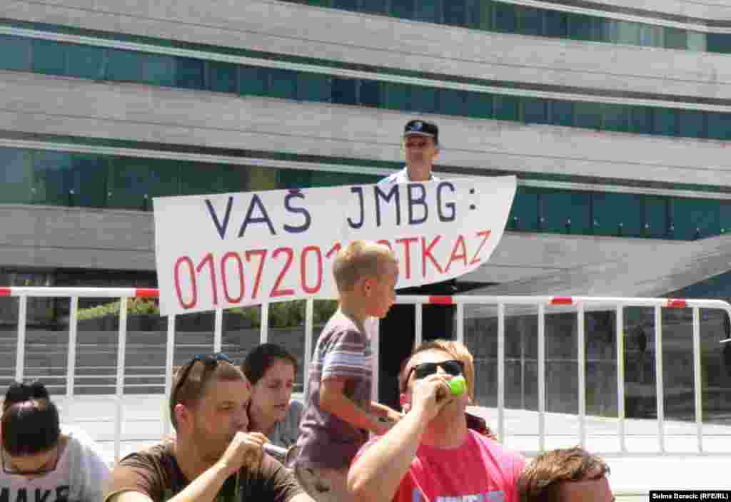 U 10 sati 1. jula ispred Parlamenta BiH počeli su protesti zbog neusvajanja zakona o jedinstvenom matičnom broju (JMBG). Moto tih protesta je "Izađi, daj im otkaz", kojima se građani BiH pozivaju na građansku neposlušnost - neplaćanje računa i sl. Na protestu u Sarajevu okupilo se nekoliko stotina ljudi. Foto: Aida Đugum i Zvjezdan Živković