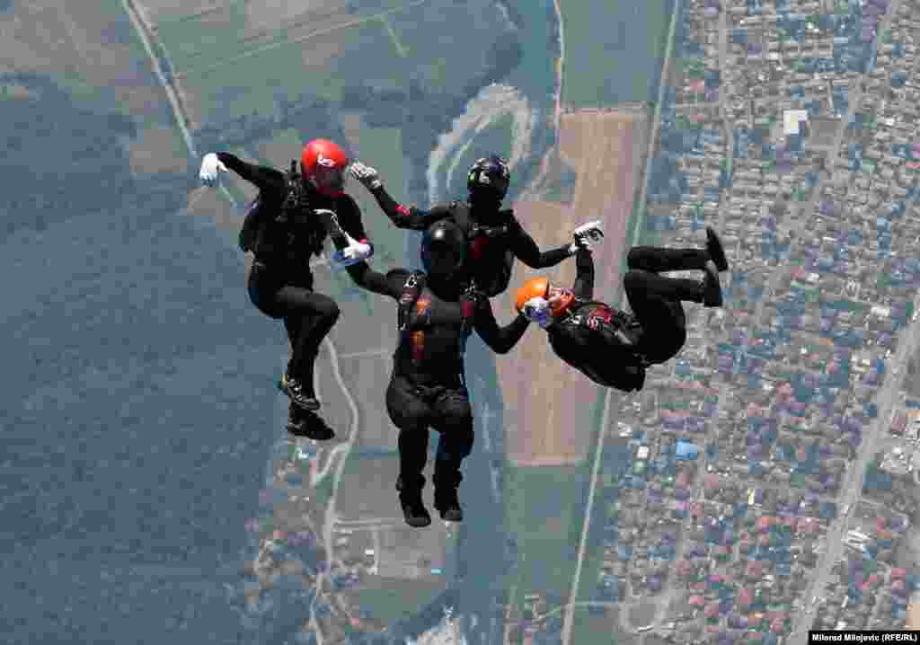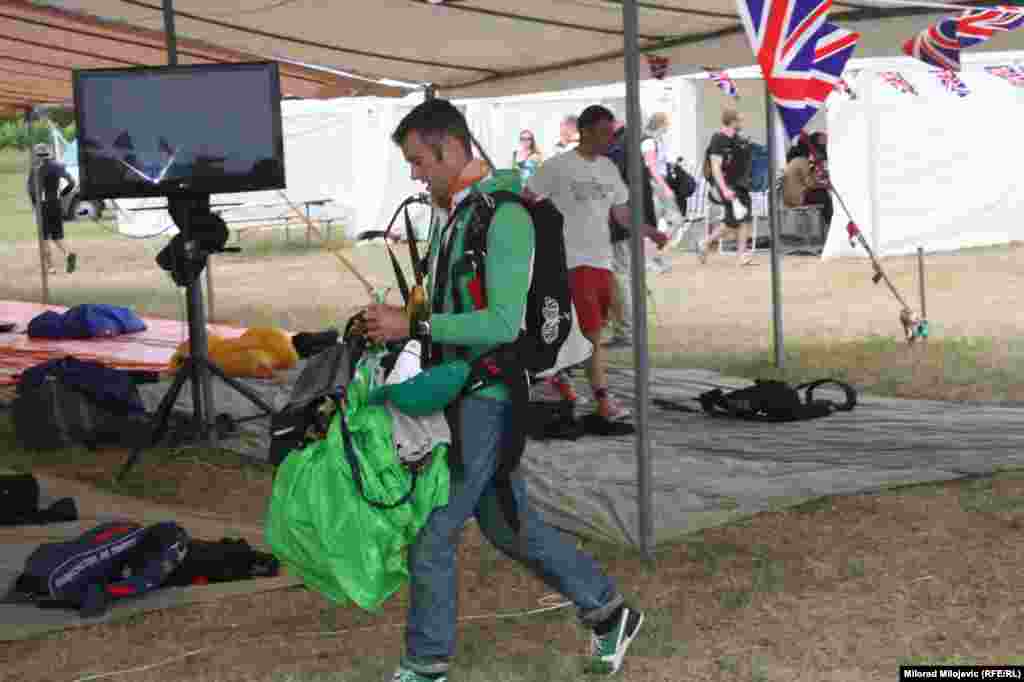 Na sportskom aerodromu u Zalužanima pored Banjaluke u toku je Evropsko padobransko prvenstvo i Svjetski kup u padobranstvu. U narednih sedam dana u grupnim relativ skokovima i artističkim disciplinama snage će odmjeriti 280 najboljih padobranaca iz 20 zemalja svijeta. 15. avgust 2013. Foto: Milorad Milojević
