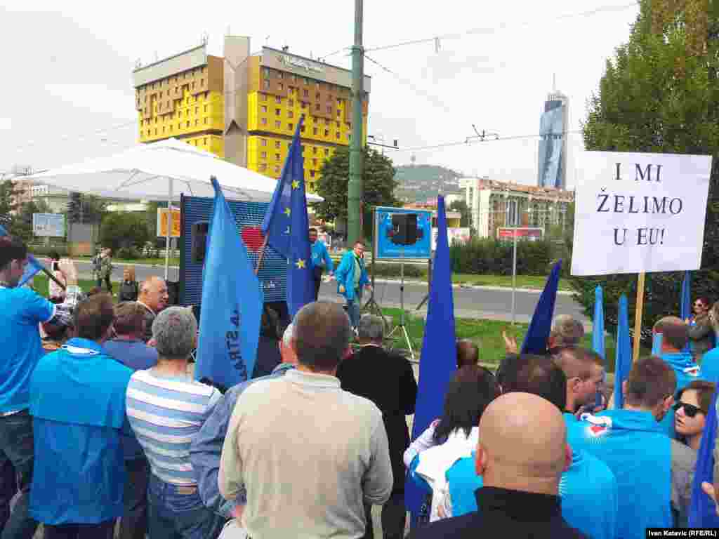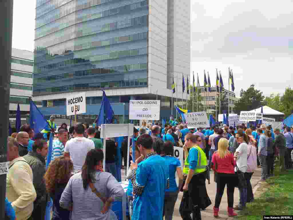 Narodna stranka Radom za boljitak organizirala je u nedjelju protestno okupljanje ispred zgrade institucija BiH u Sarajevu. Danas ističe rok od 90 dana koji je ova stranka dala parlamentarnim strankama u BiH za provedbu presude u slučaju "Sejdić-Finci".