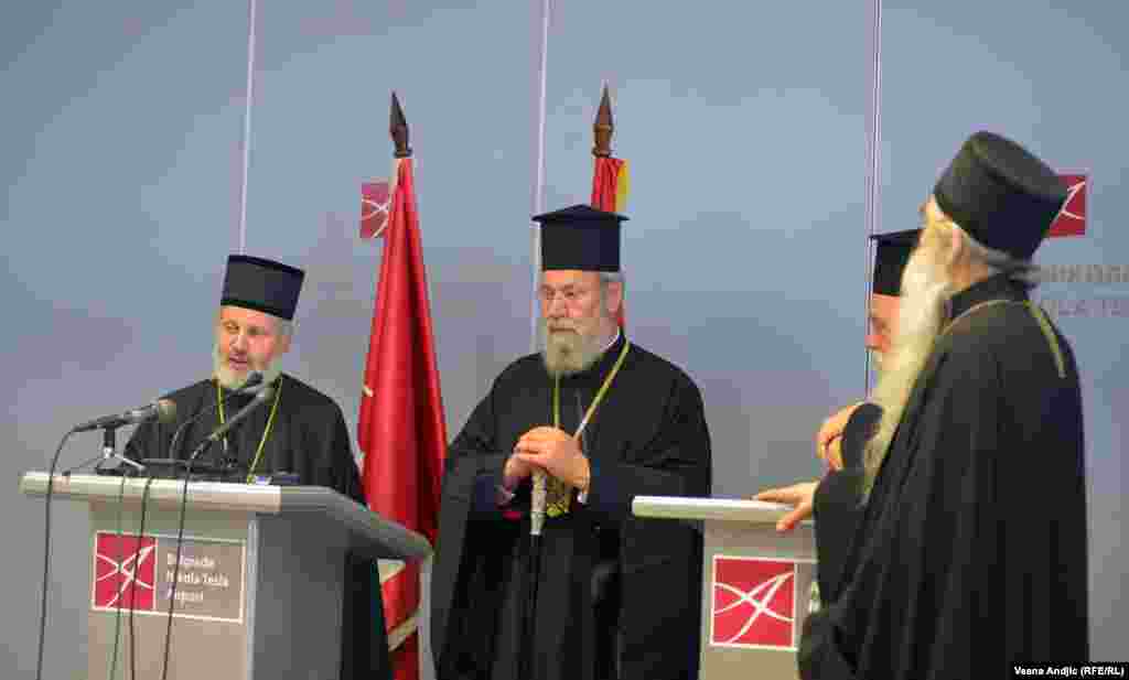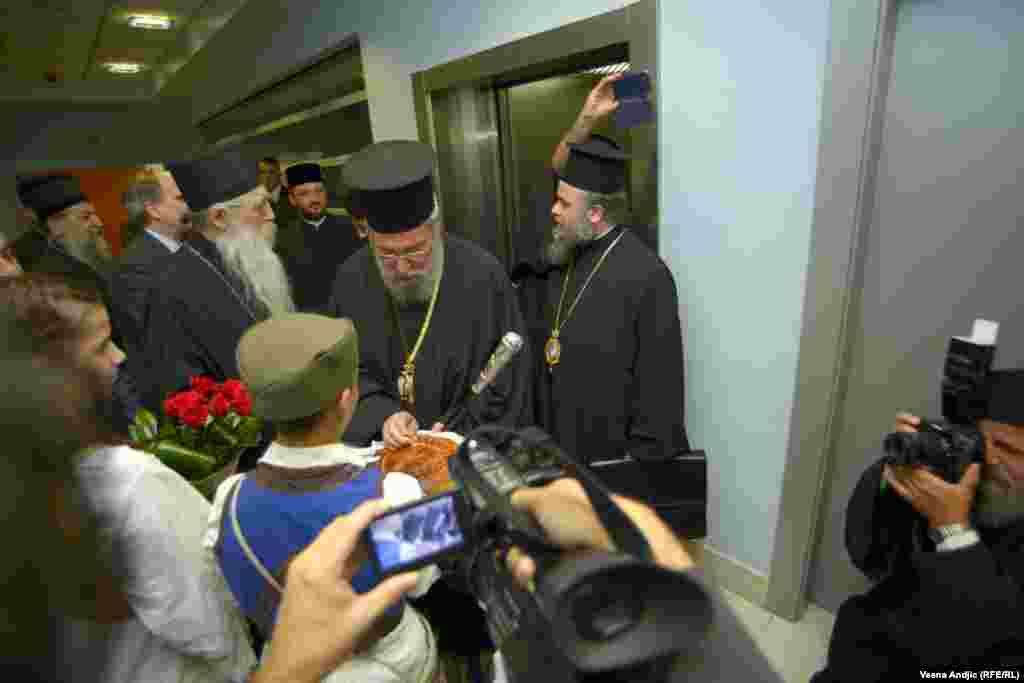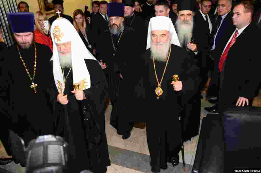Neke od najznačajnijih zvanica koje su stigle na proslavu 17 vekova Milanskog edikta, među kojima su vaseljenski patrijarh Vartolomej i moskovski Kiril po dolasku u Srbiju dočekao je lično poglavar Srpske pravoslavne crkve Irinej. Beograd, 4.10.2013. RSE Foto/Vesna Anđić