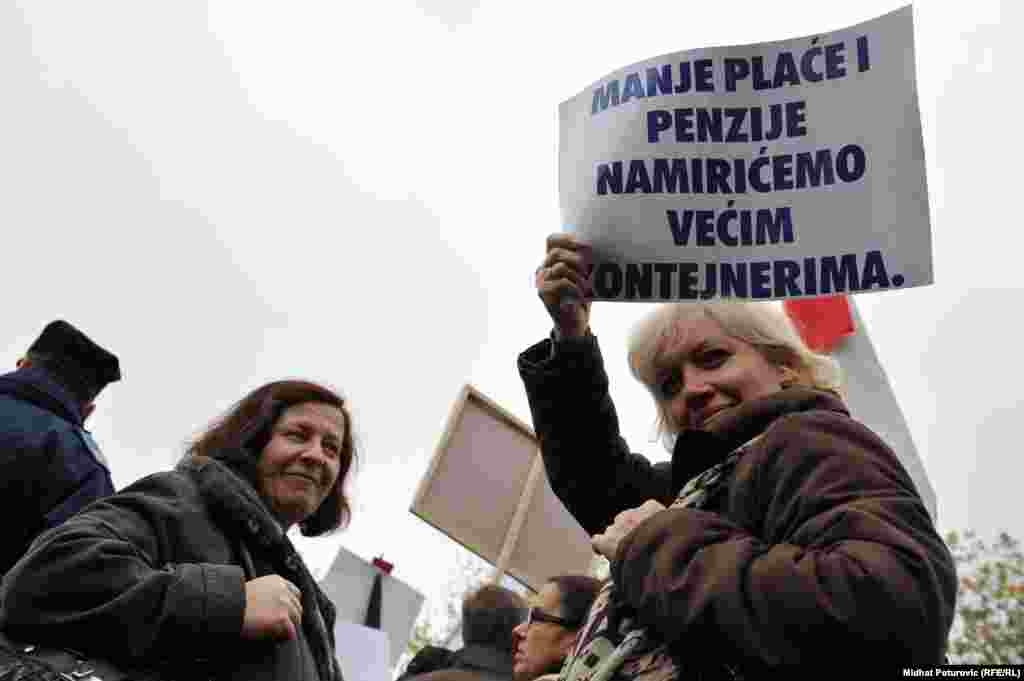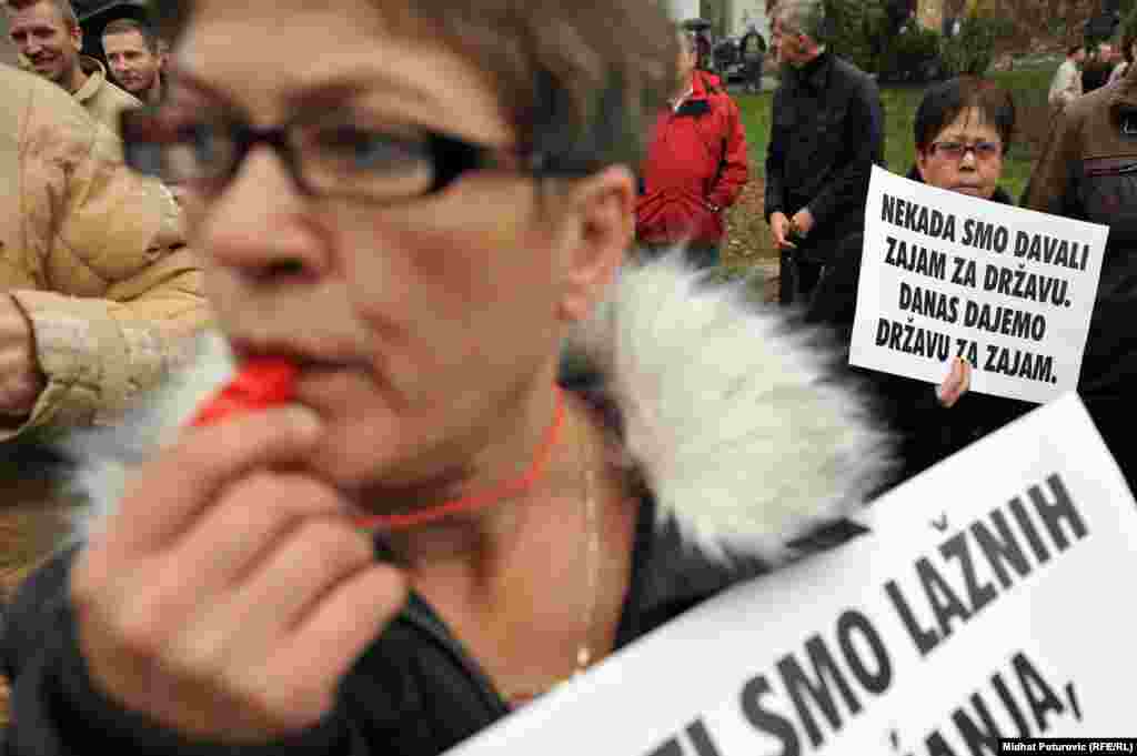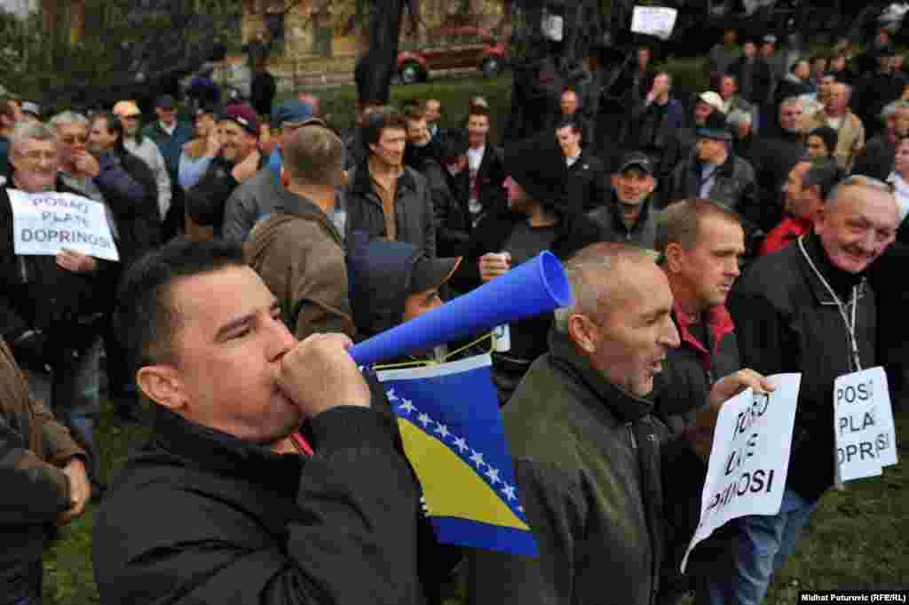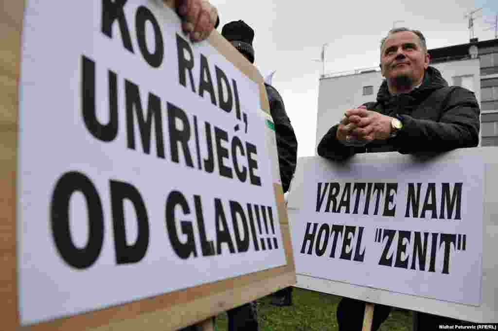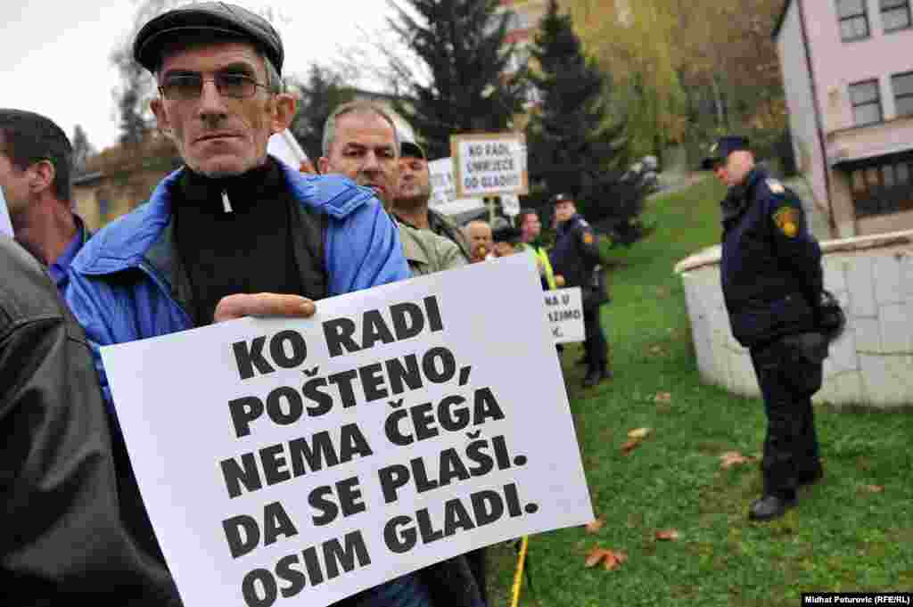 Nekoliko stotina radnika metalske industrije iz Zenice, Kaknja, Tuzle, Goražda i Sarajeva protestovalo je ispred Vlade Federacije BiH zbog gašenja firmi, gubitka hiljada radnih mjesta i nepoštivanja prava radnika. Sarajevo, 14.11.2013. RSE Foto/Midhat Poturović