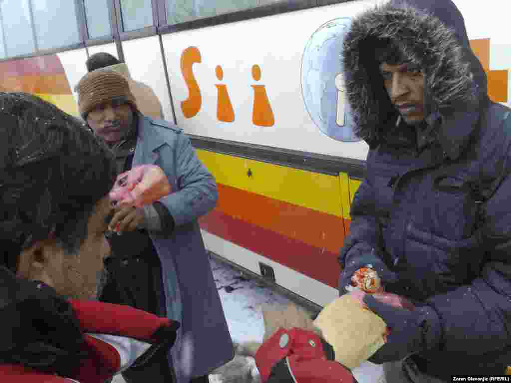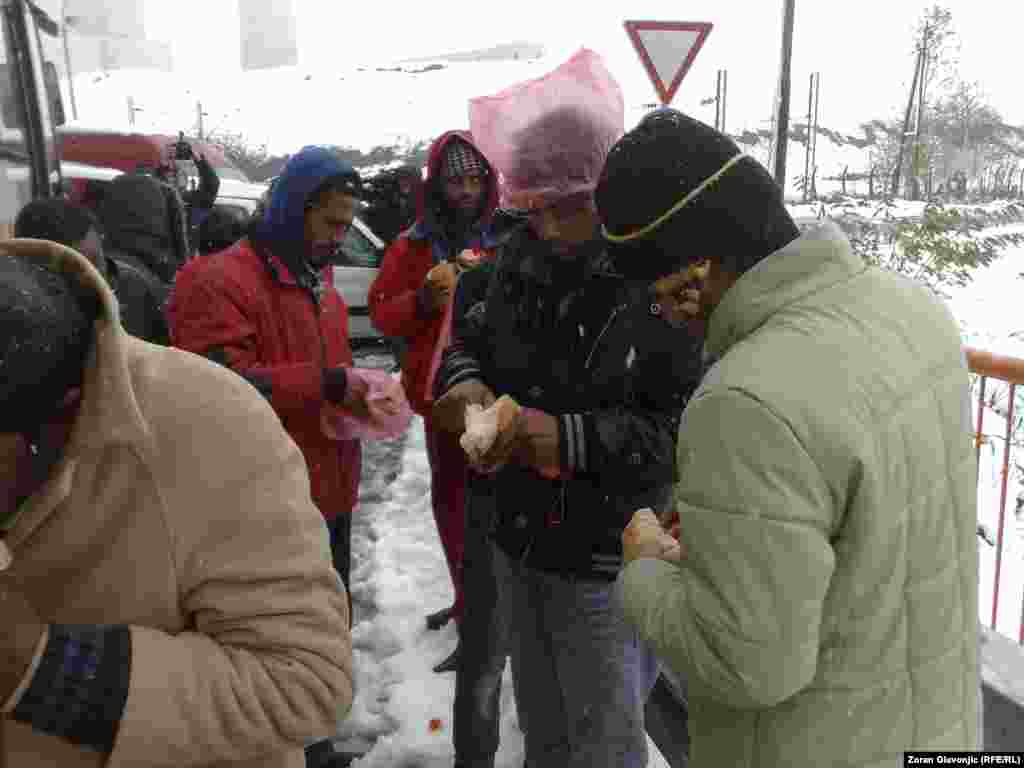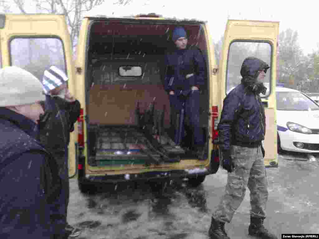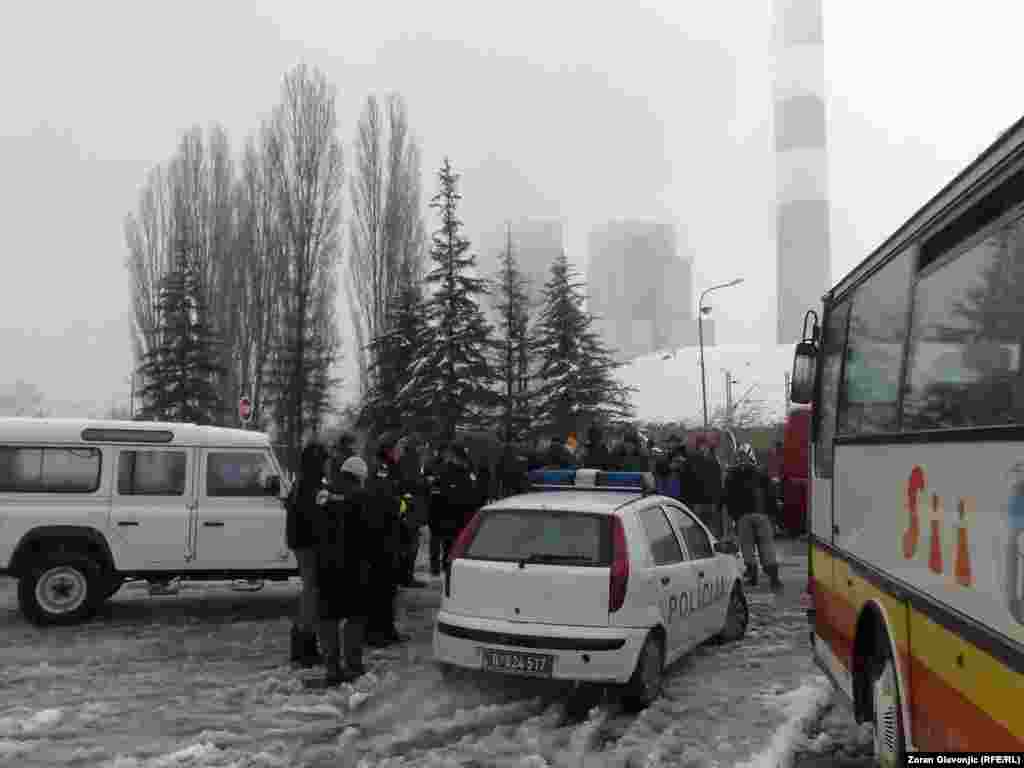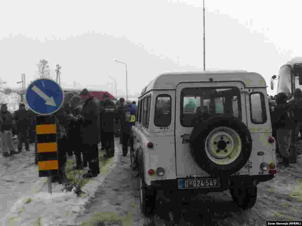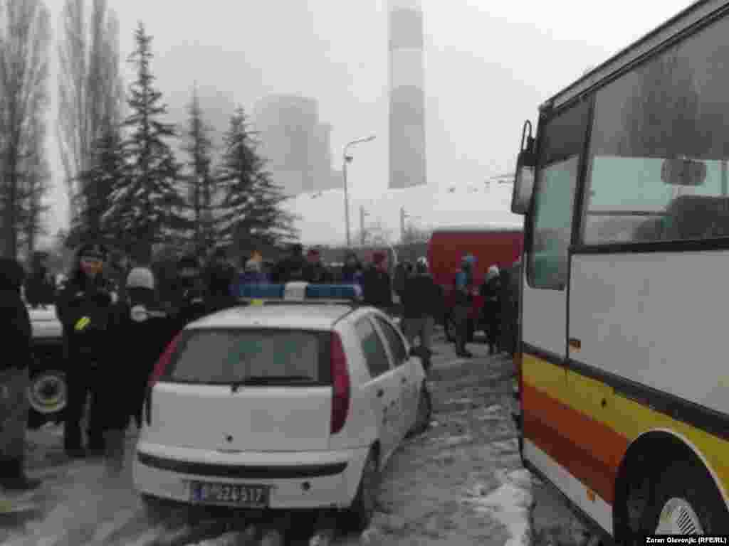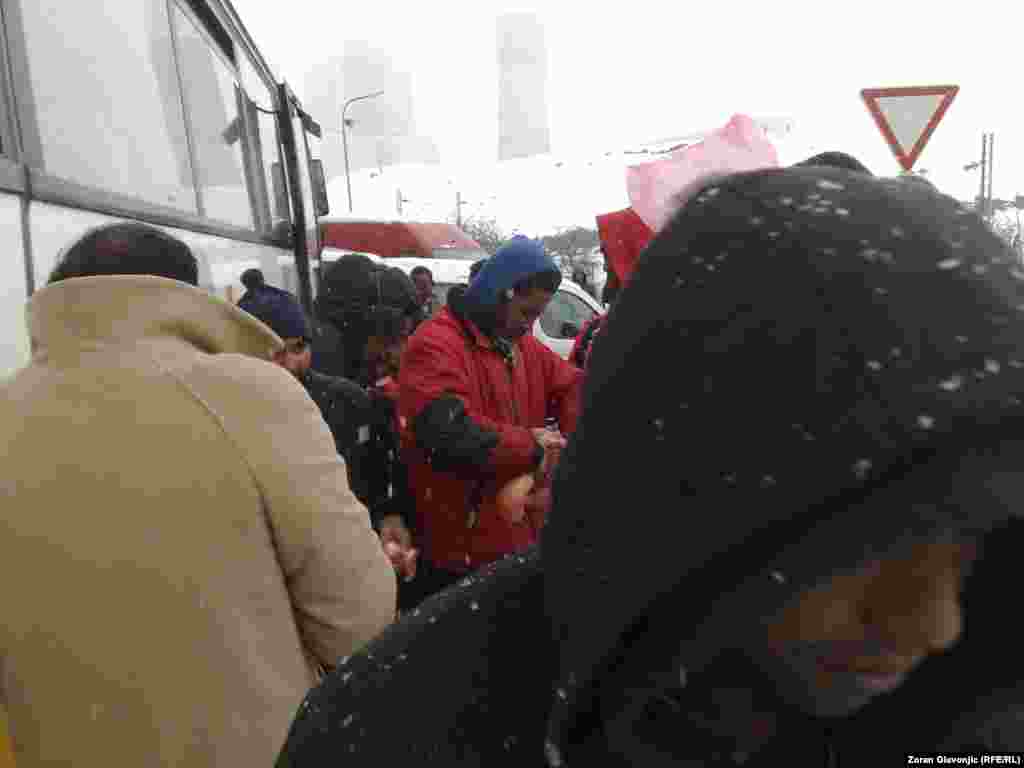 Par stotina meštana sela Ušće kod Obrenovca u neposrednoj blizini Termoelektrane Nikola Tesla B blokirali su sve ulaze u to naselje u kom bi u radničkim barakama po odluci Vlade Srbije trebalo da bude smešteno 75 azilanata koji su do sada boravili u neljudskim uslovima oko Centra za azilante u Bogovađi jer tamo za njih nije bilo mesta. 27. novembar 2013. Foto: Zoran Glavonjić