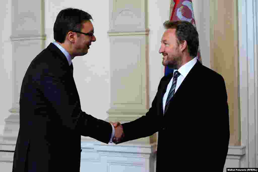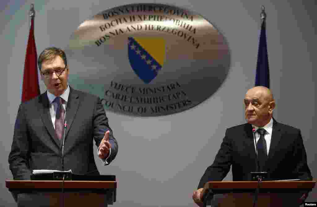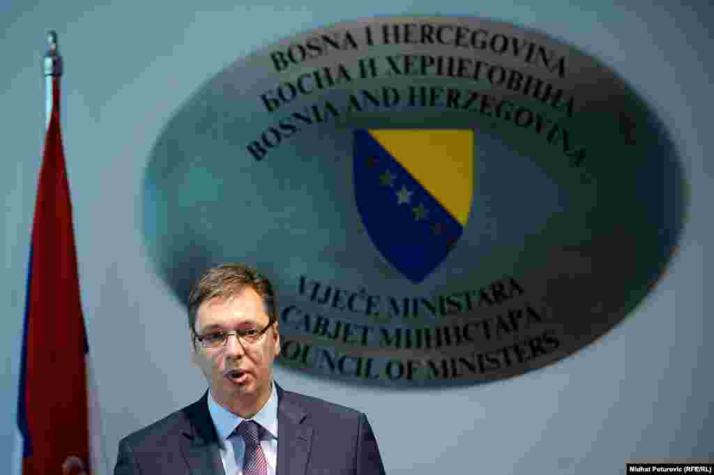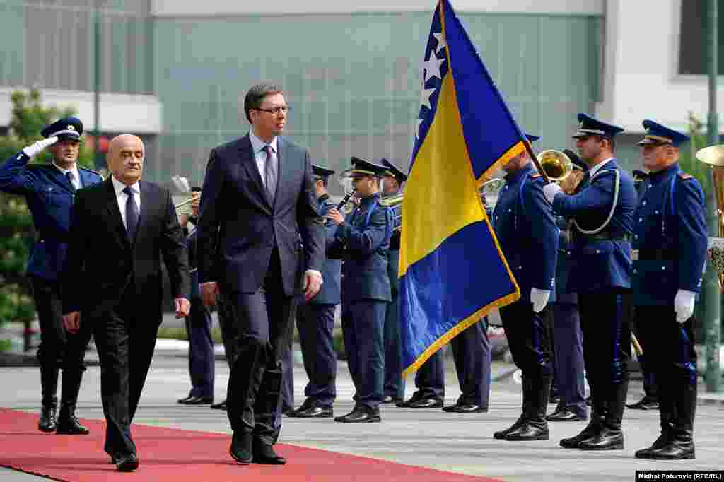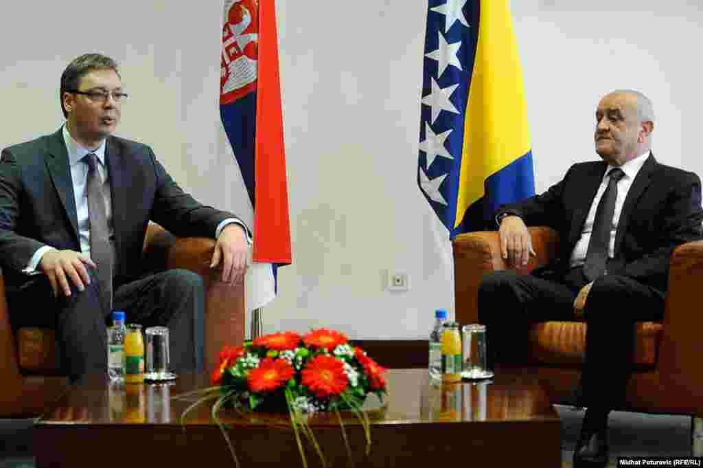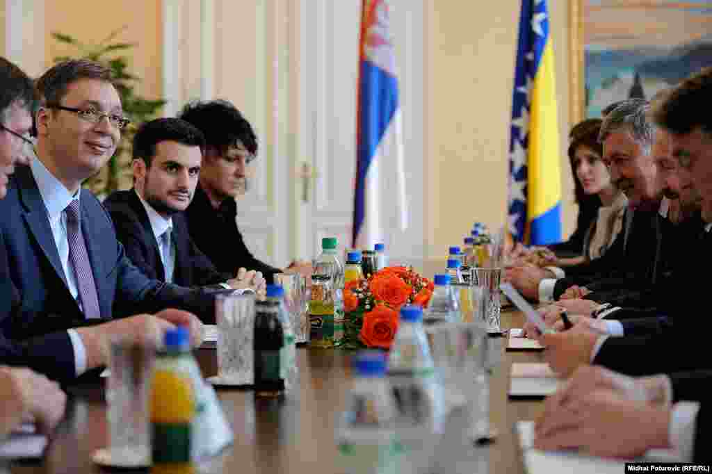 Premijer Srbije Aleksanadar Vučić posjetio je Sarajevio na svom pravom putovanju u inostranstvo. Vućić se sastao sa članovima Predsjedništva BiH i sa predsjedavajućim Vijeća ministara BiH Vjekoslavom Bevandom na čiji je poziv i došao u BiH. (Foto: Midhat Poturović)