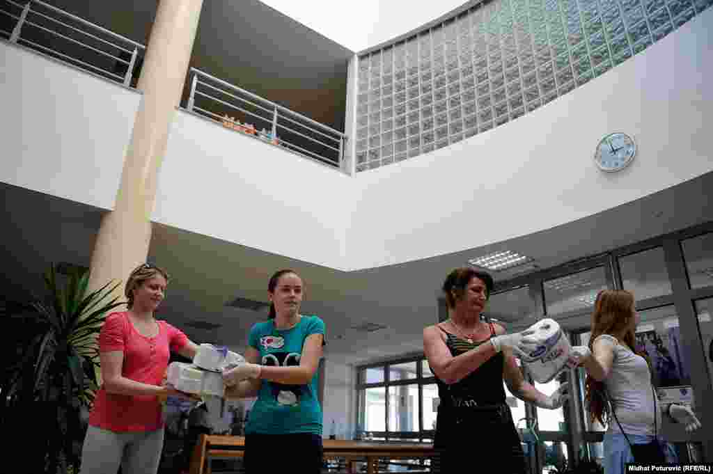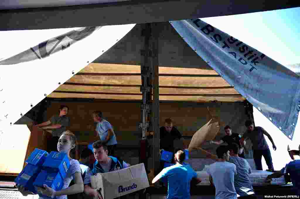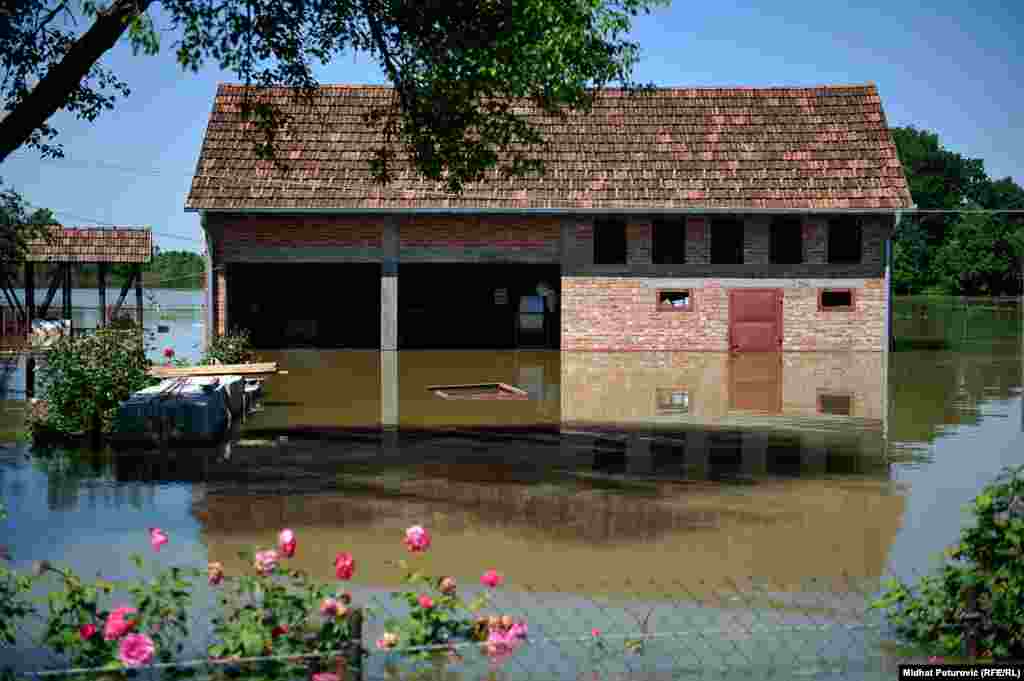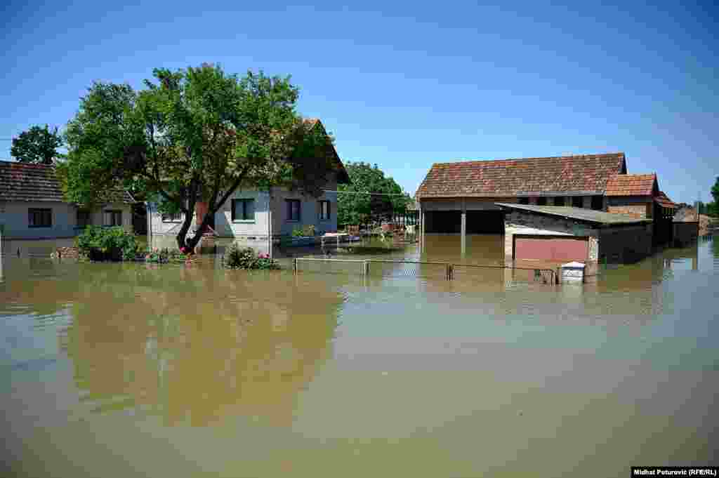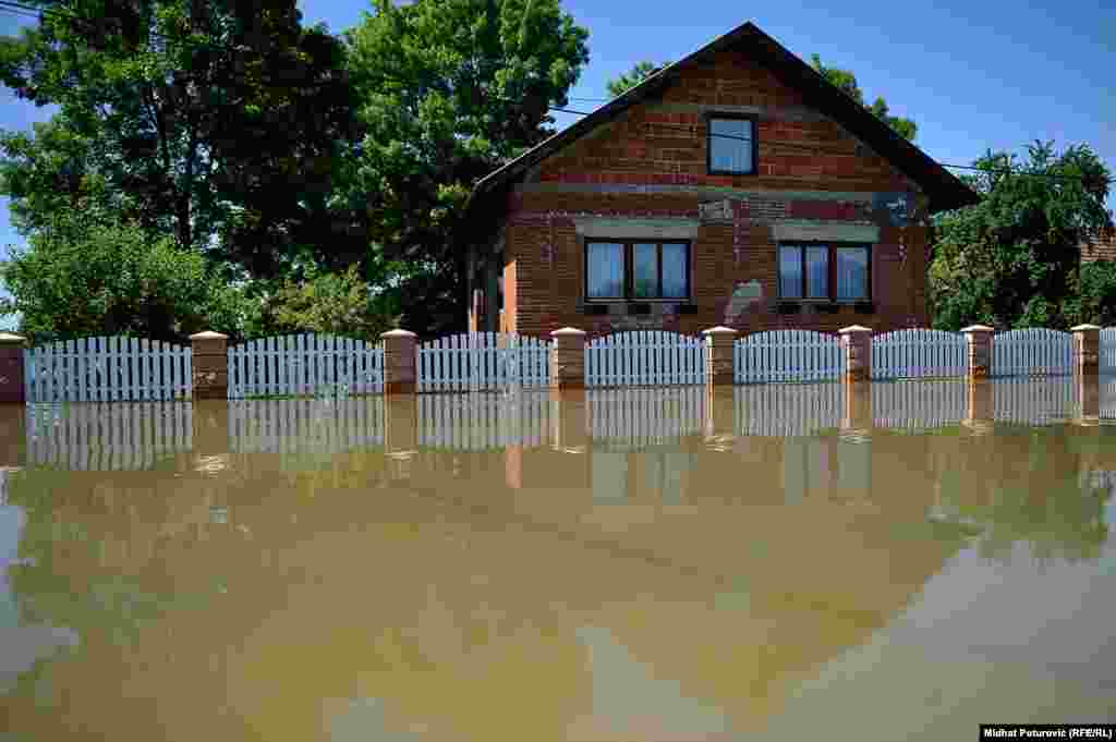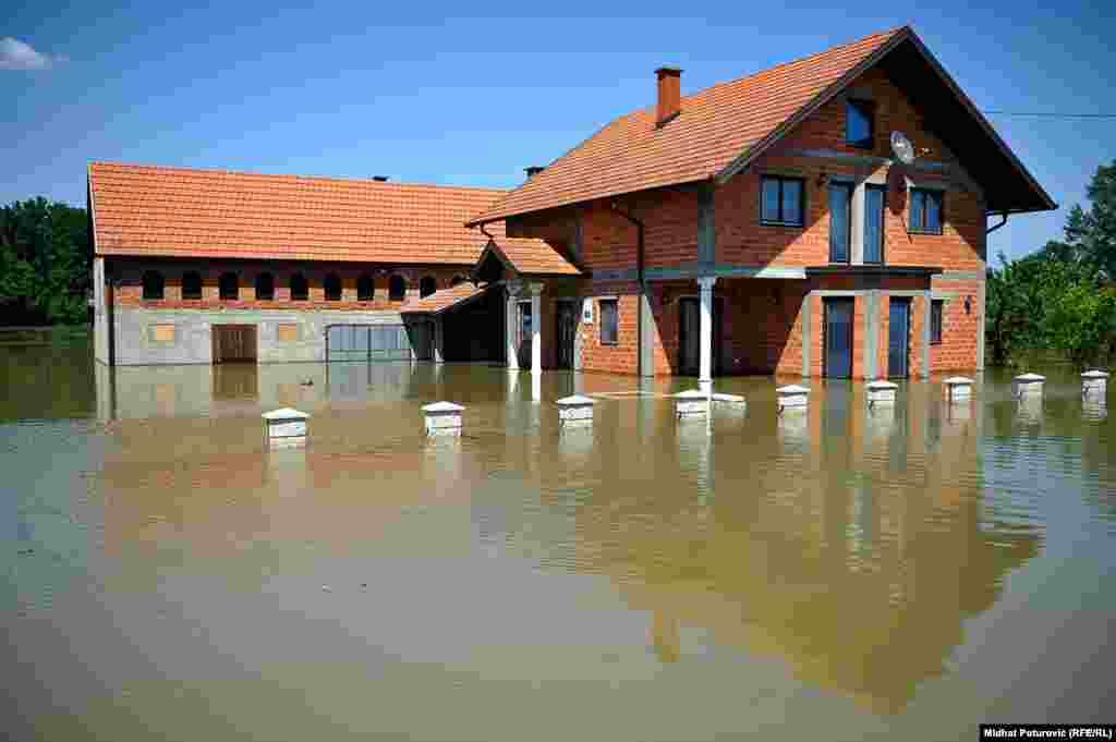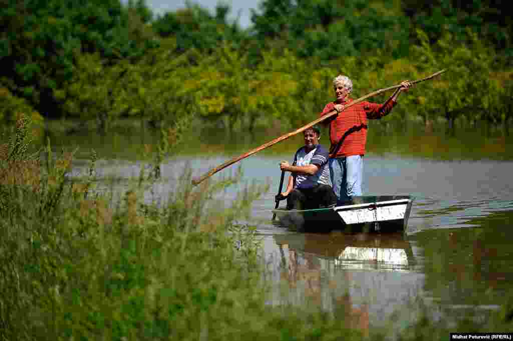 Selo Lepnica u okolini Orašja potpuno je poplavilo. Stanovnici su evakuisani, a čamcima, u grupama obilaze napuštene domove i hrane preživjelu stoku. U centru grada, u Srednjoškolskom centru, ali i Osnovnoj školi u Orašju organizovani su prihvatni centri za evakuisane mještane. FOTO: Midhat Poturović