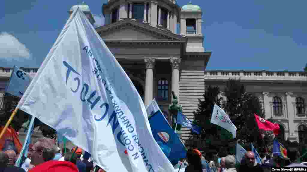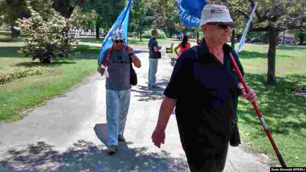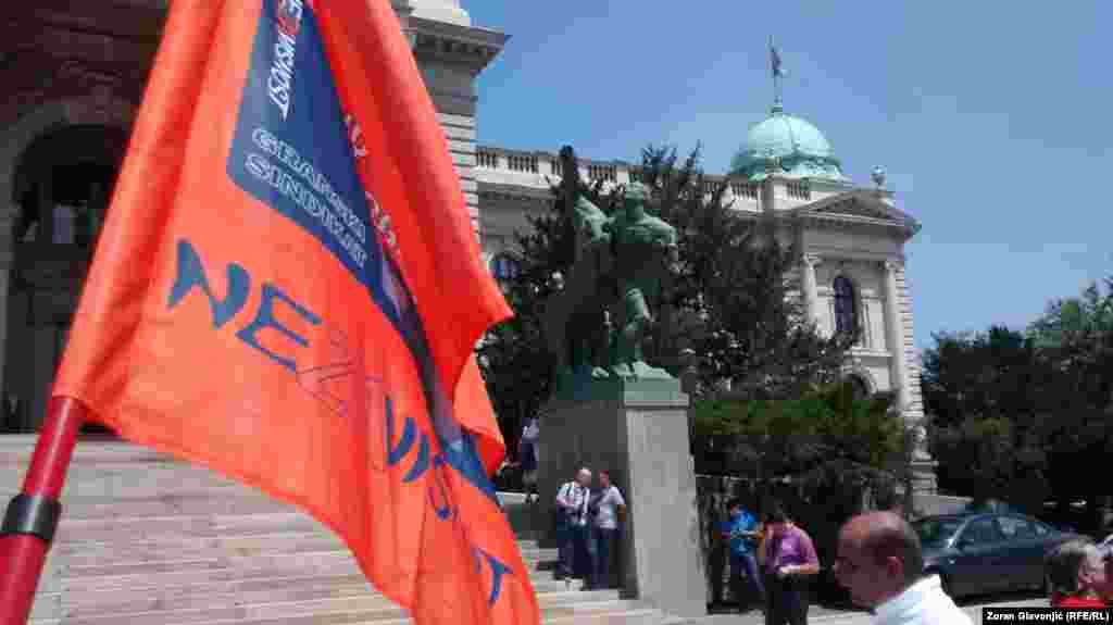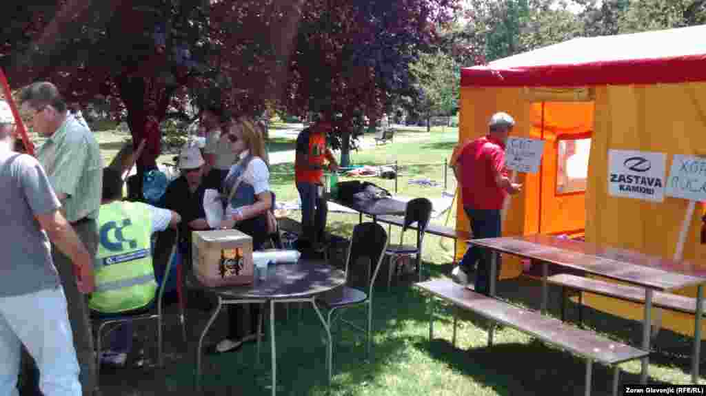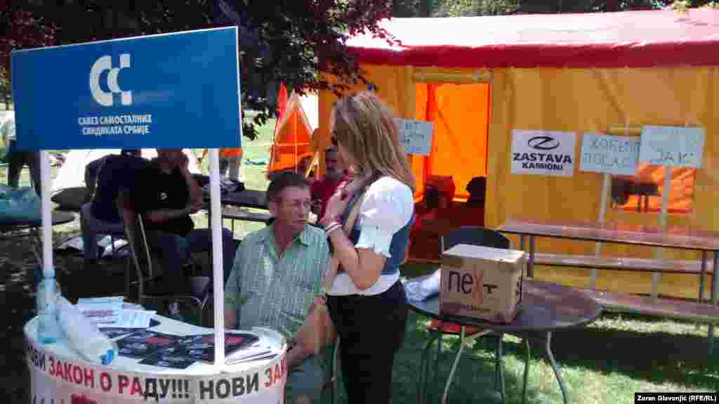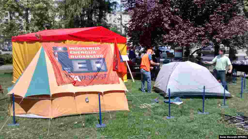 Članovi sindikata i aktivisti protestuju u Beogradu protiv Zakona o radu i Zakona o penziono - invalidskom osiguranju o kojima Skupština Srbije raspravlja. Postavili su šatore u Pionirskom parku gde će boraviti do četvrtka, kada se očekuje veliki sindikalni protest radnika iz cele Srbije. FOTO: Zoran Glavonjić