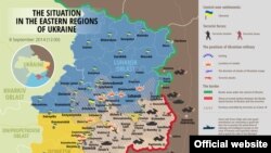 Mapa Nacionalnog saveta za bezbednost i odbranu Ukrajine o situaciju na istoku zemlje za 8. septembar.