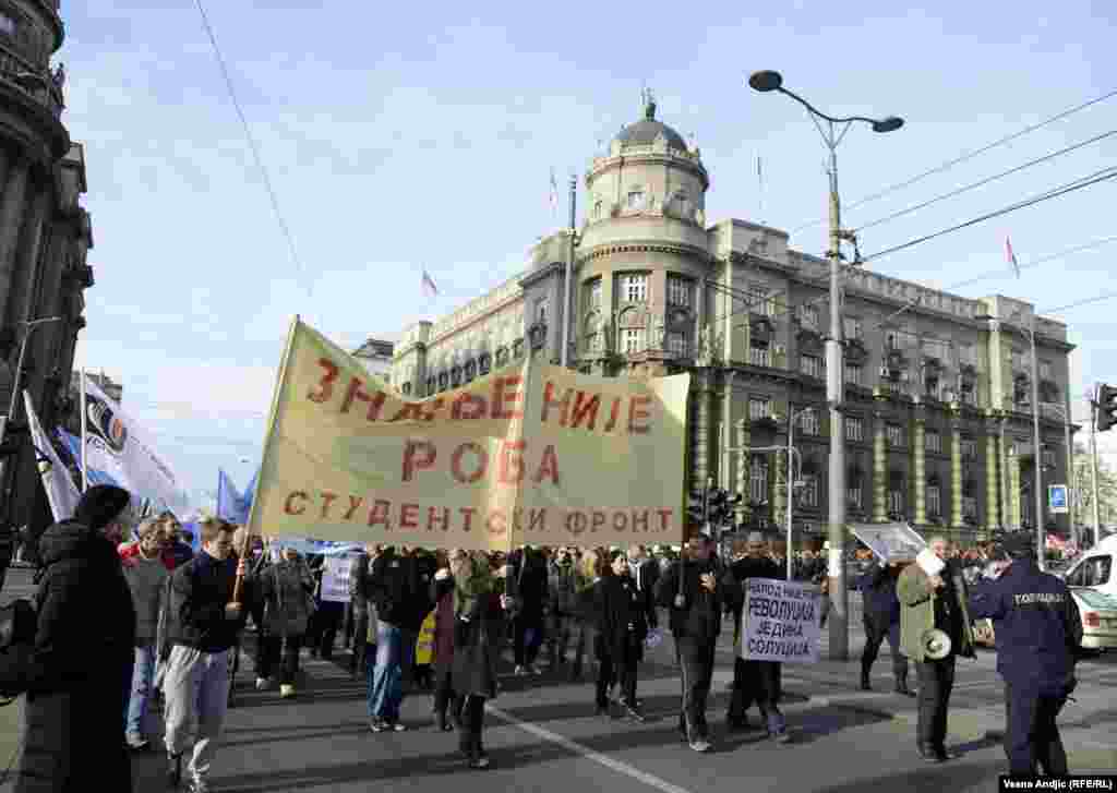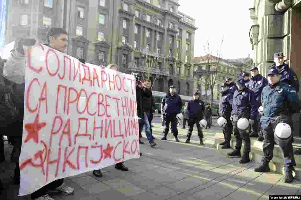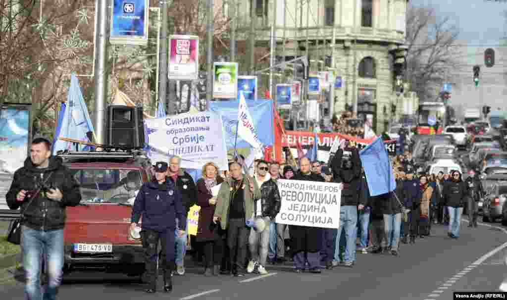 Prosvetni radnici su danas potpuno obustavili rad i umesto u školama nastavnici su na ulicama Beograda protestvujući između ostalog i protiv smanjivanja zarada
