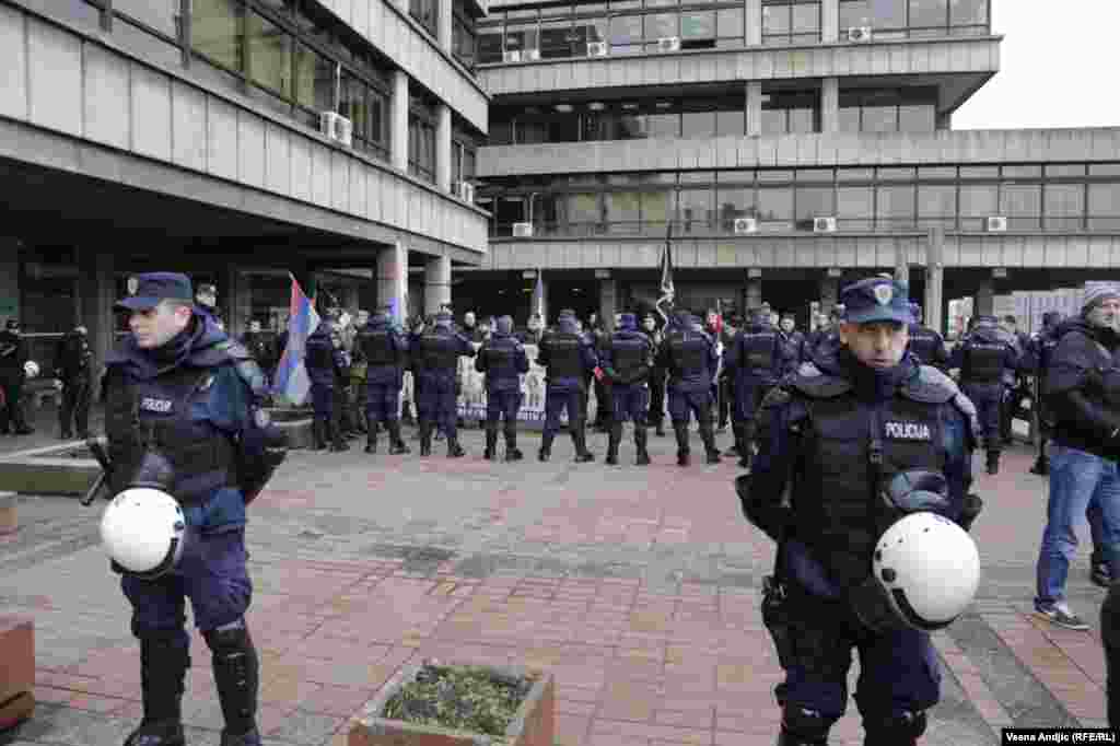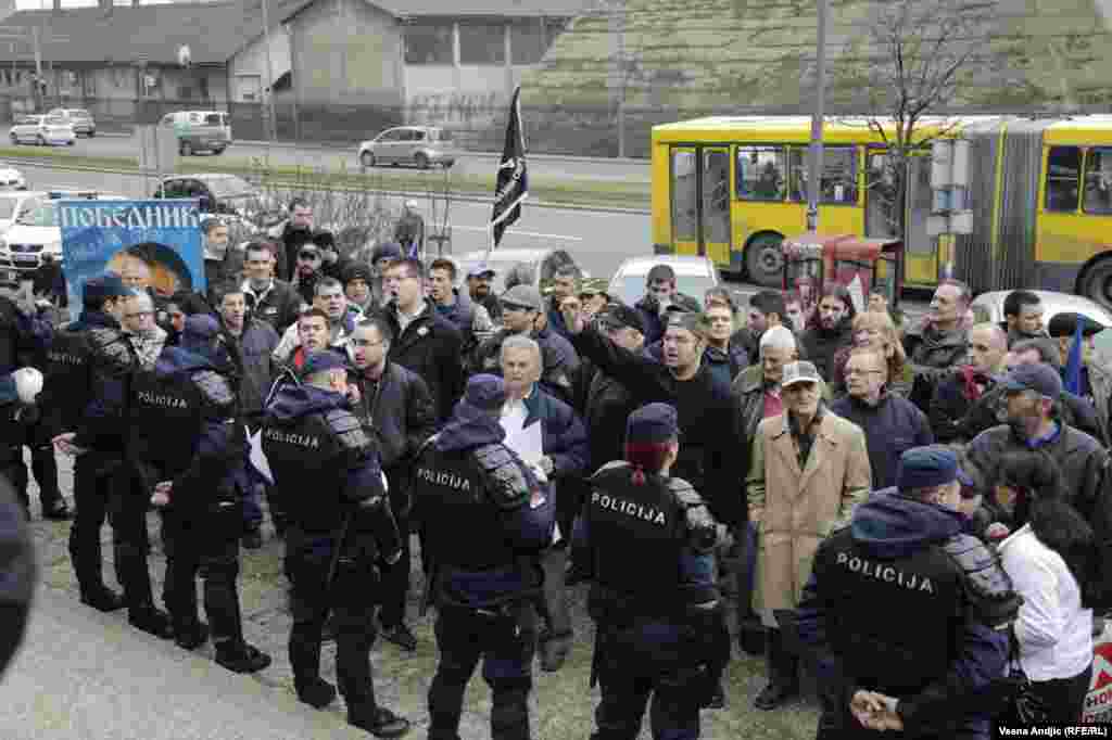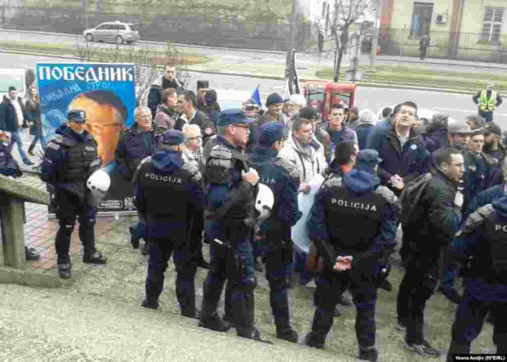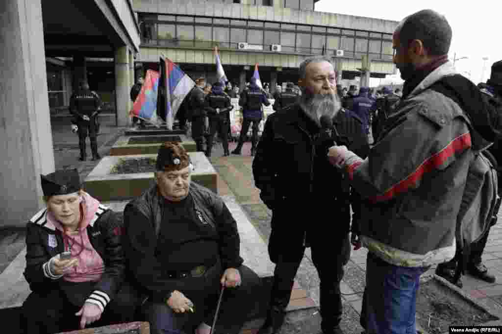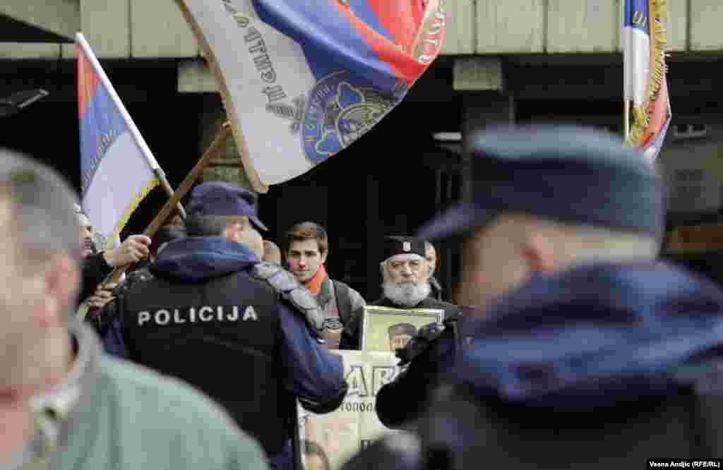 Pristalice četničkog pokreta i Srpske radikalne stranke ispred Palate pravde dale su podršku rehabilitaciji Draže Mihailovića dok su na drugoj strani bili protivnici iz Nove komunističke partije Jugoslavija i levičari. Foto RSE:Vesna Anđić