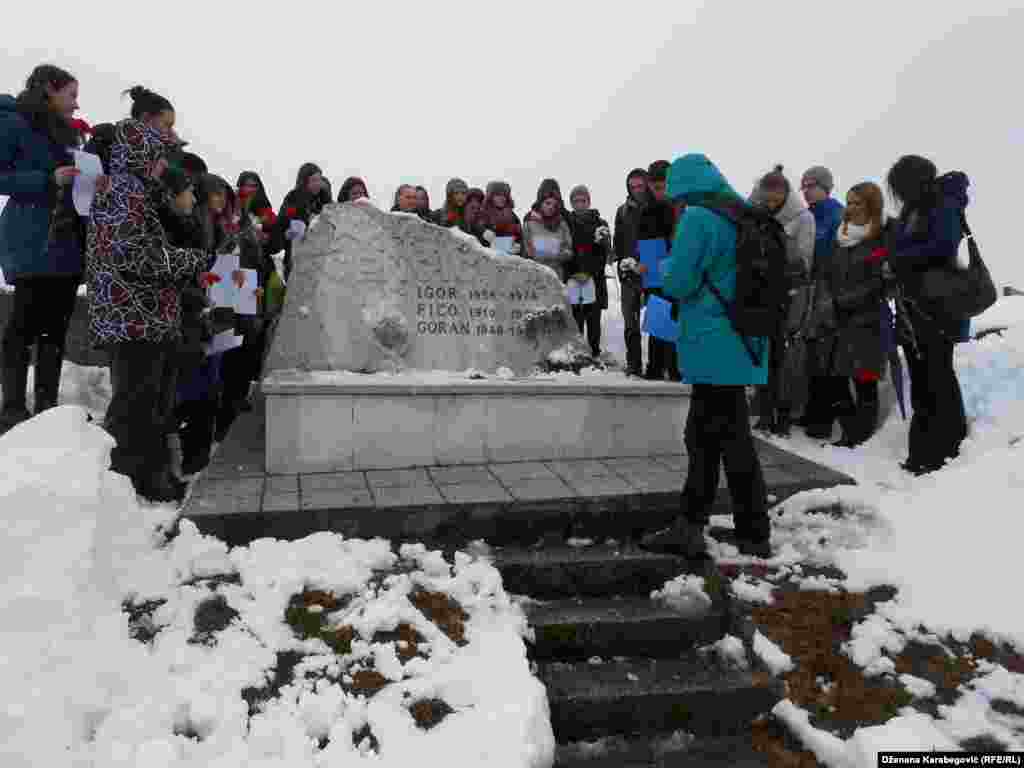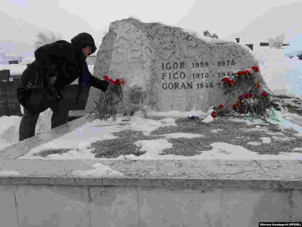 Građani u posjeti grobu Gorana Čengića, nekadašnjeg rukometaša koji je početkom rata pokušao spasiti komšiju Husniju Ćerimagića na Grbavici, tada okupiranom dijelu grada. Obojicu je na Trebeviću ubio Veselin Vlahović Batko. 6.8.2015. RSE foto