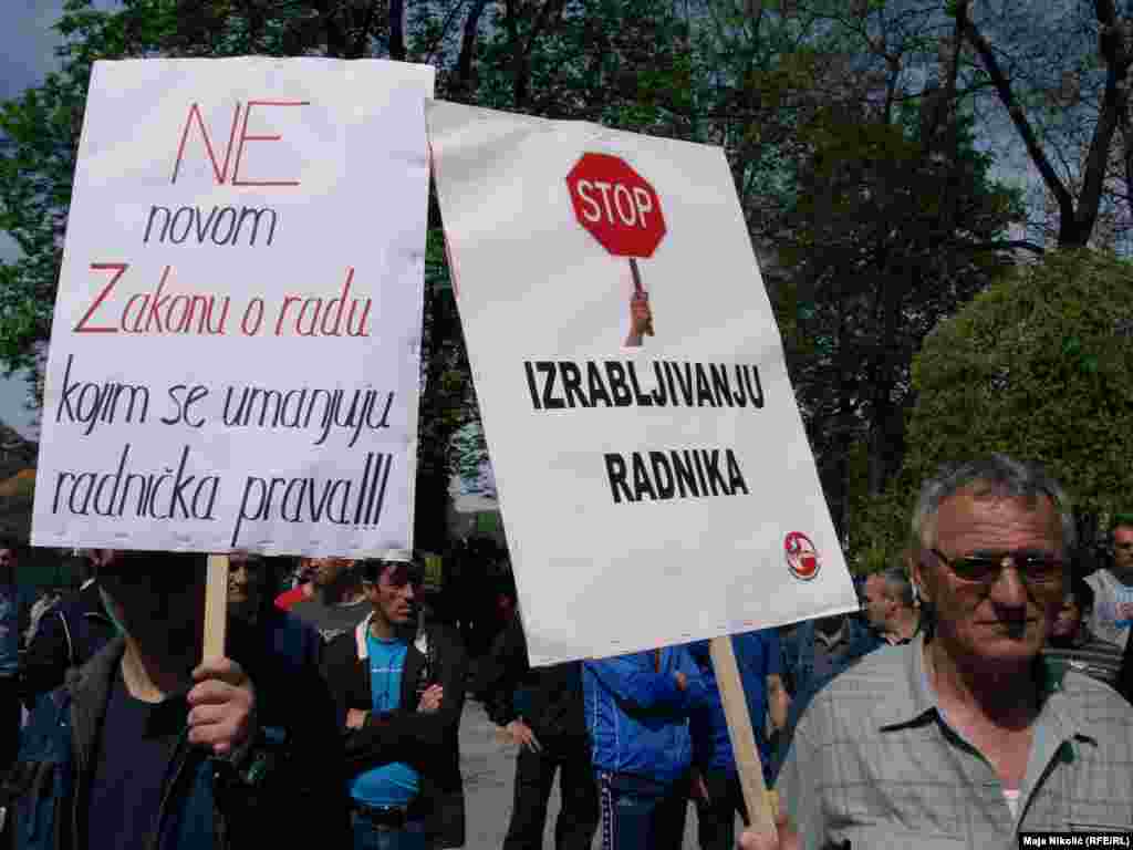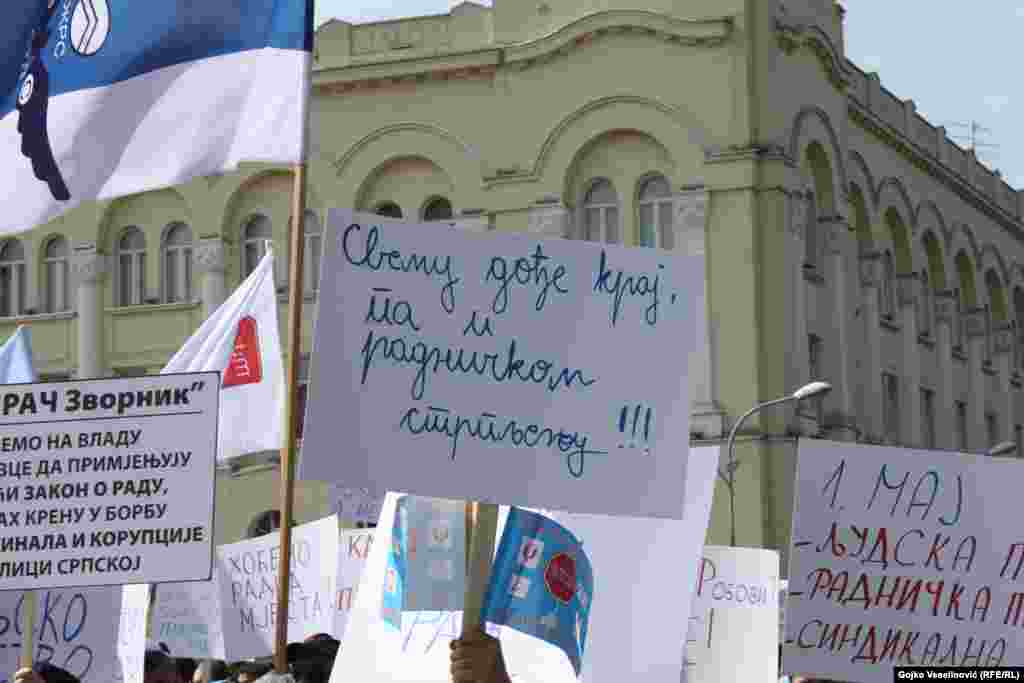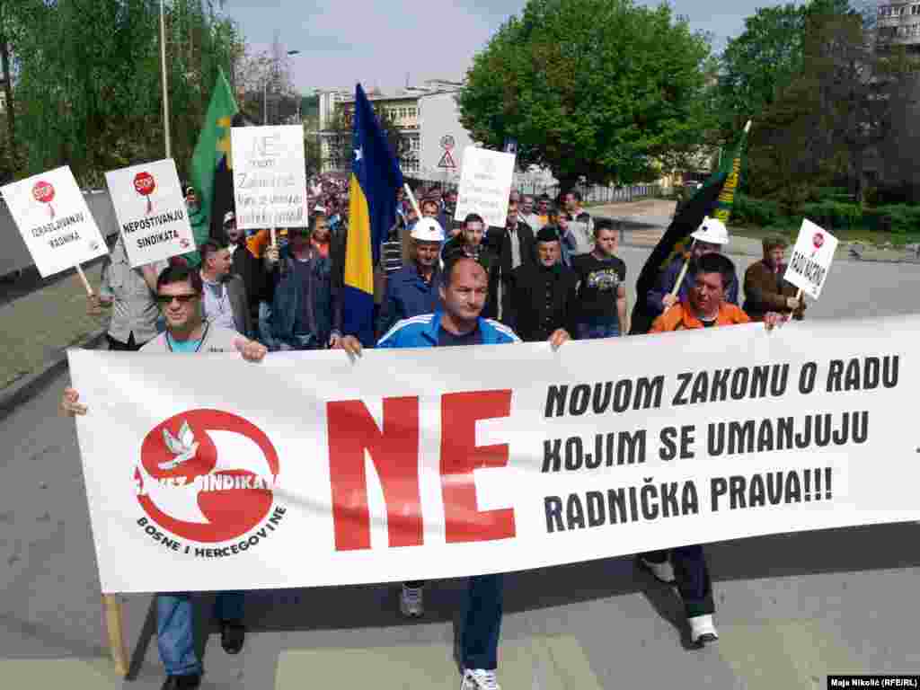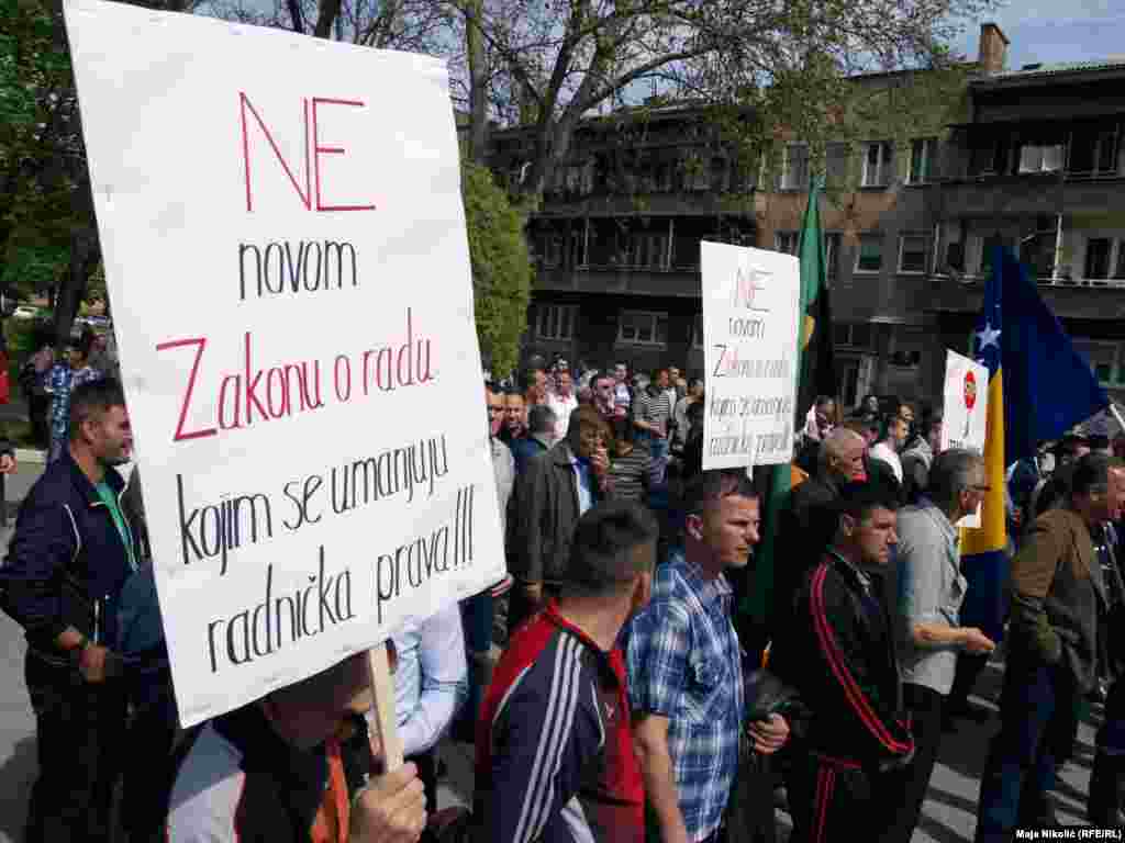 Povodom Praznika rada, u Tuzli i Banjaluci nekoliko hiljada građana je protestovalo na ulicama. Tuzlanske proteste su podržali i predstavnici plenuma širom BiH. Radnici u BiH protestovali su zbog novog zakona o radu, ali i zbog sve lošijeg položaja i uništavanja preduzeća. Paralelno sa protestima, dio građana BiH, odlučio je da Međunarodni praznik rada obilježi tradicionalnim urankom, uz glazbu i nezaobilazni vojnički grah. Foto / RSE: Maja Nikolić, Gojko Veselinović i Zoran Matkić