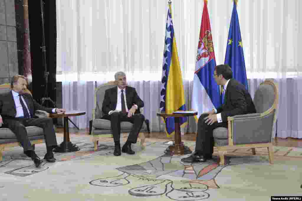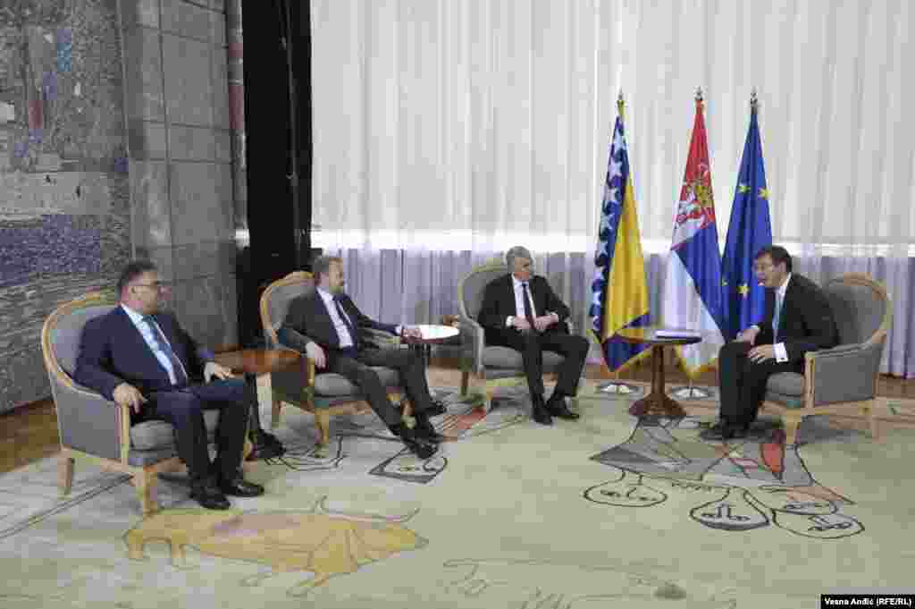 Članovi Predsedništva Bosne i Hercegovine Dragan Čović, Maden Ivanić i Bakir Izetbegović stigli su u sredu u Beograd, na sastanak sa premijerom Srbije Aleksandrom Vučićem. Nakon zvaničnih razgovora prošetali su Beogradom.