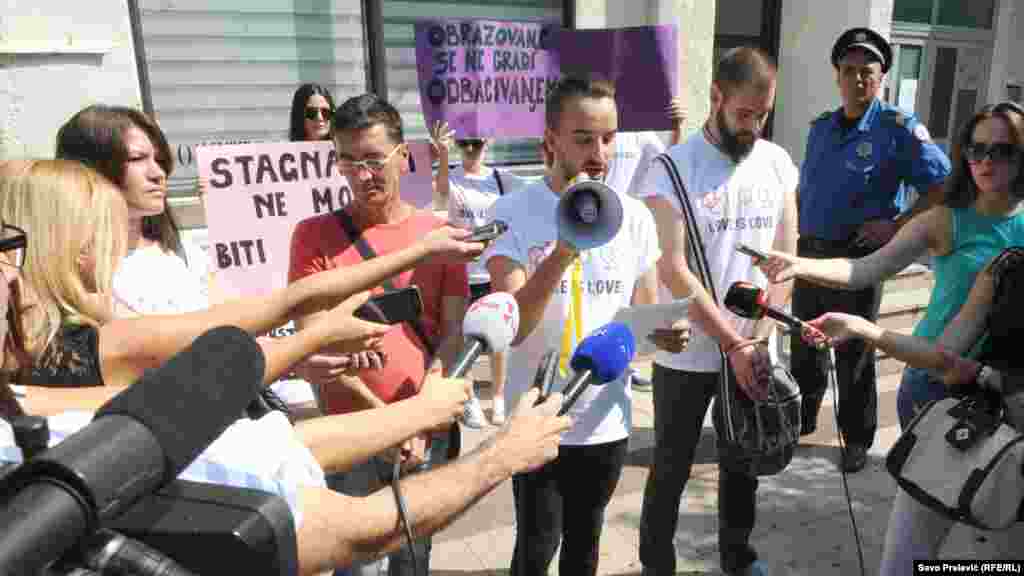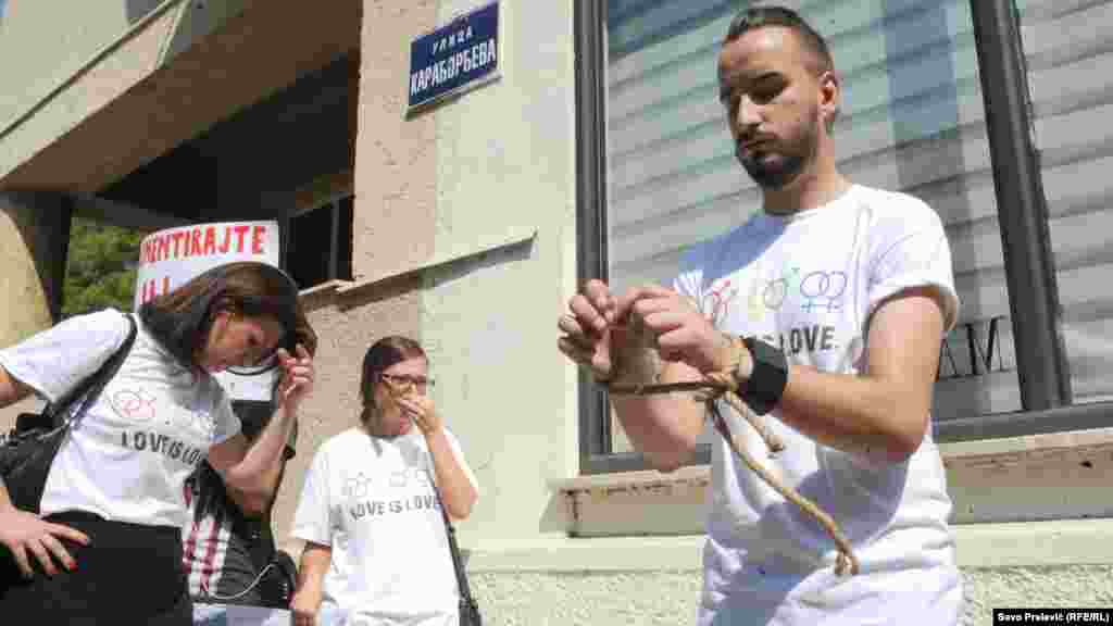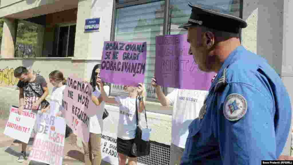 U Podgorici protest crnogorskih LGBT organizacija koje su nezadovoljne zato što država, kako tvrde, ne primjenjuje sopstvenu Strategiju za unaprjeđenje kvaliteta života seksualnih manjina zbog čega su i dalje izloženi diksriminaciji, brojnim rizicima i problemima. RSE / Foto: Savo Prelević