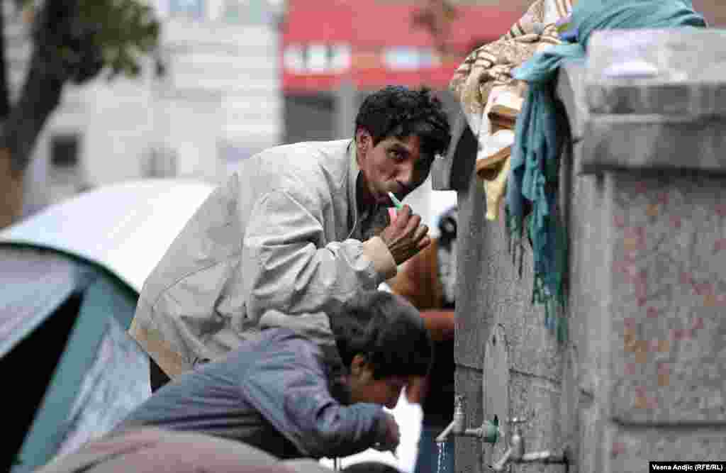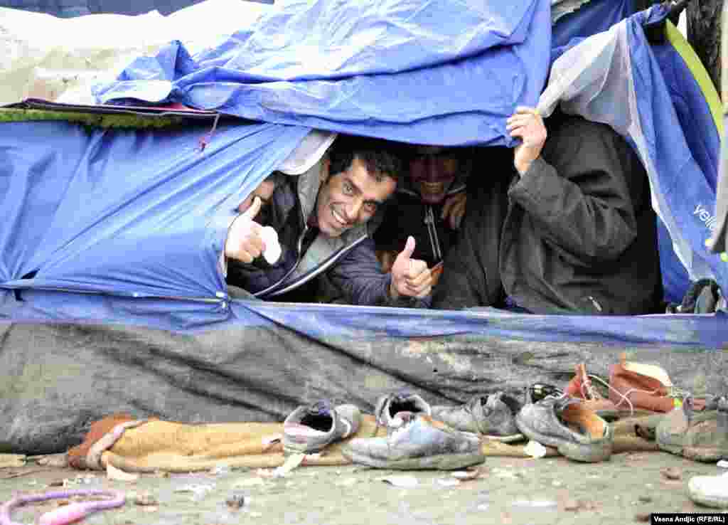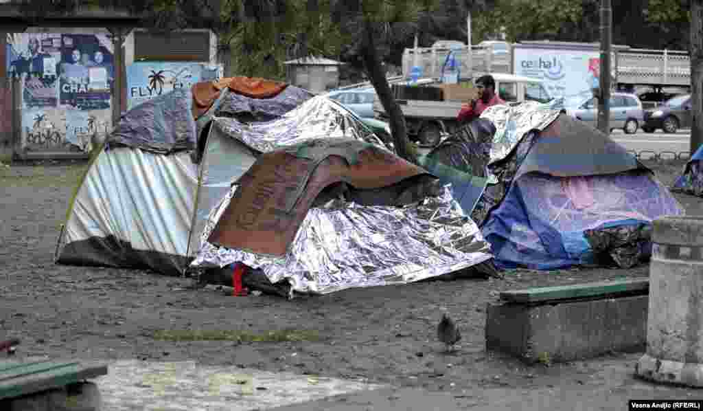 U danima u kojima je hladno i u beogradskim stanovima, u parkovima nadomak autobuske stanice nekoliko malih, kamperskih šatora i dva nešto veća, jedina su zaštita od hladnog vremena i kiše za nekoliko stotina ljudi, koje je beg iz njihovih ratom zahvaćenih zemalja privremeno doveo u Srbiju.