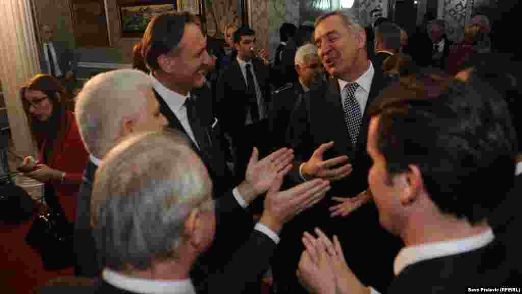 Premijer Crno Gore Milo Đukanović istakao je na svečanom prijemu da je upućivanje pozivnice za NATO uspjeh cijele Crne Gore, te historijski dan za ovu državu i njene građane. "Ovo je kruna dugogodišnjih napora započetih 2006. godine i najznačajniji dan poslije referenduma jer Crna Gora ulazi u ekskluzivni krug zemalja koje su sinonim najboljih vrijednosti savremene civilizacije", saopštio je premijer. RSE/Foto: Savo Prelević