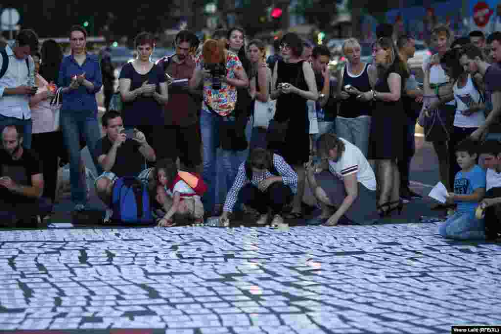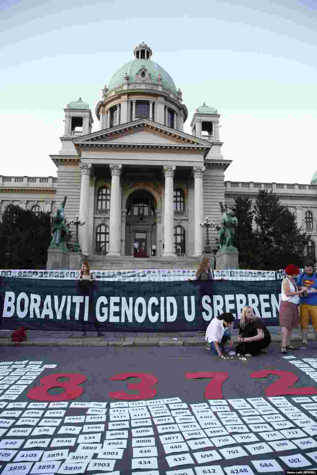 Aktivisti nevladinih organizacija i građani Beograda palili su sveće i ređali 8372 broja ispred Skupštine Srbije, u znak sećanja na genocid u Srebrenici. Ovo je drugi put da se na ovaj način obeležava godišnjica genocida u tom bosanskom mestu, kada su snage Vojske Republike Srpske ubile preko osam hiljada muškaraca i dečaka bošnjačke nacionalnosti. (foto: Vesna Lalić)
