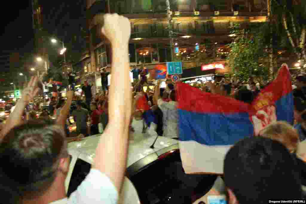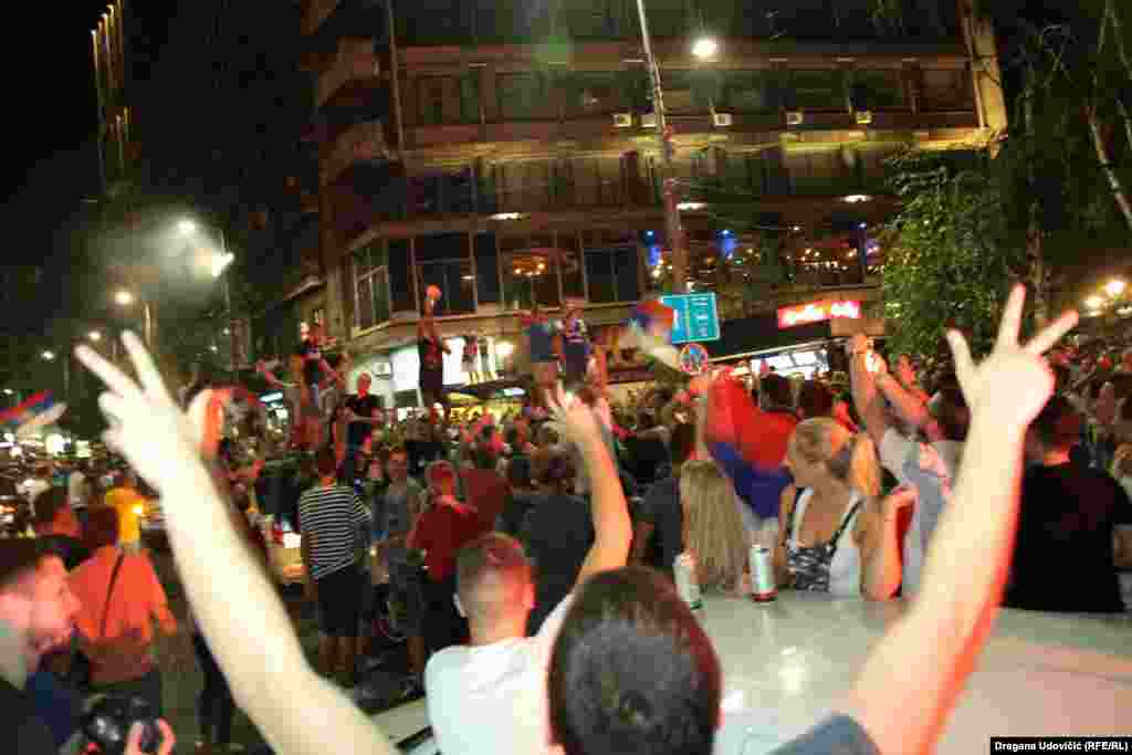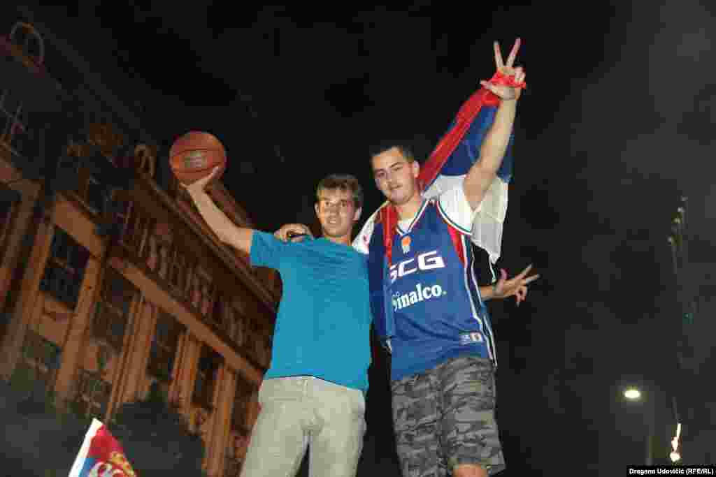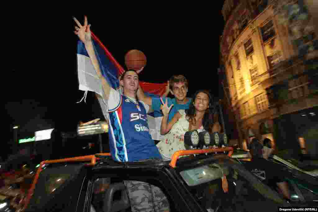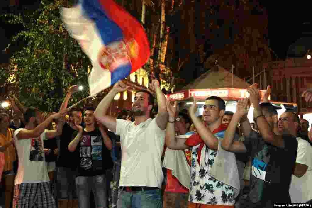 Nekoliko hiljada ljudi proslavilo je u u Beogradu u nedelju kasno uveče srebro Košarkaške reprezentacije Srbije na Olimpijskim igrama u Riju. Reprezentacija Srbije izgubila je u finalu od SAD 96:66 i tako osvojila drugo mesto na OI. Foto: Dragana Udovičić