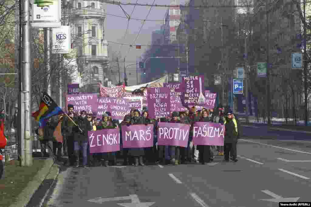 Aktivistkinje feminističkih i antifašističkih pokreta su u centru Beograda organizovale "Ženski marš protiv fašizma" želeći time da ukažu na rast desnih političkih snaga svuda u svijetu i ugrožavanje prava žena.