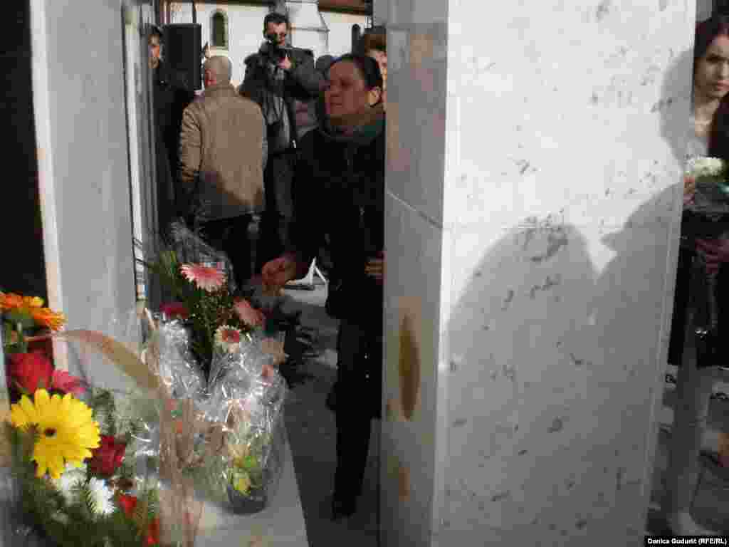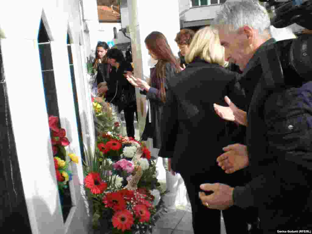 Laying flowers at the memorial for murdered civilians in Strpce 1993.