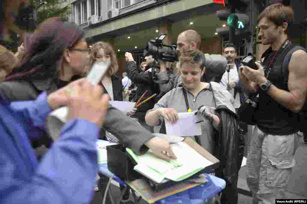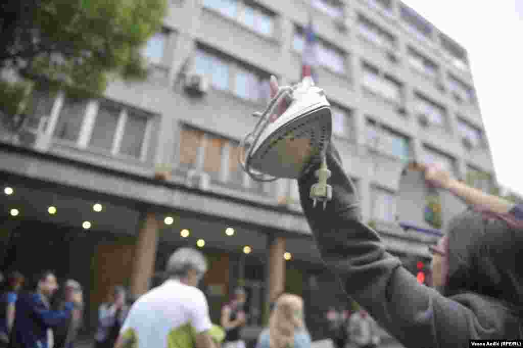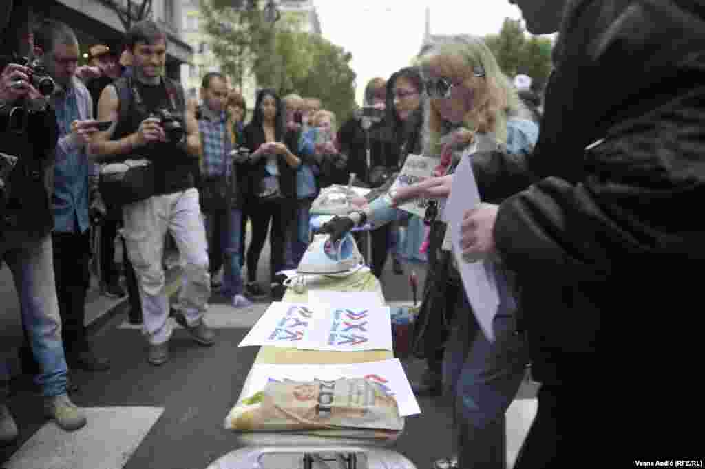 Performansom "Peglanje listića" stotinjak građana nastavilo je višenedeljne proteste protiv "diktature" u Beogradu. Nakon šetnje centralnim gradskim ulicama, oni su ispred sedišta Republičke izborne komisije Srbije peglali glasačke listiće.