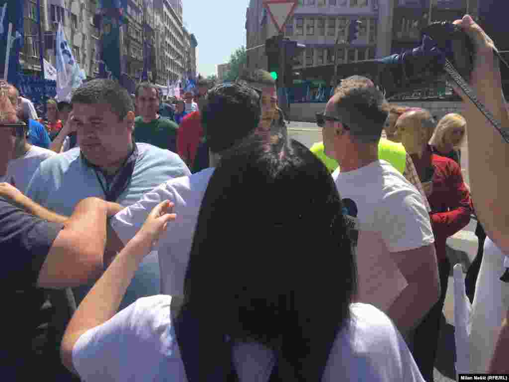 Neki od okupljenih su su prisutnom ministru za rad, zapošljavanje, boračka i socijalna pitanja Zoranu Đorđeviću uzvikivali: "Đorđeviću, lopove!", "Kolika ti je plata?", "Šta je bilo sa fabrikama?", "Šta je bilo sa Gošom?", a zatim pokušali da mu se i fizički približe dok je bio na čelu kolene koja je od Trga Nikole Pašića krenula put Skupštine Srbije, a zatim i zgrade Vlade Srbije – gde se protest, kako je planirano, i završava.