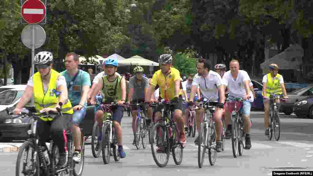 Niški biciklisti i članovi inicijative “Ne damo niški aerodrom” organizovali su biciklističku vožnju od Trga kralja Milana do spomen parka Bubanj u Nišu.