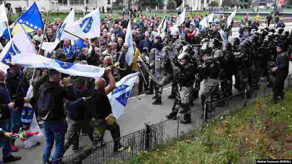 Protest nezadovoljnih demobilisanih boraca u srijedu 5. septembra prerastao je u fizički obračun sa pripadnicima specijalne policije na ulicama Sarajeva. Nakon okupljanja u simboličnih pet do dvanaest sati ispred zgrade Parlamenta Federacije BiH nekoliko stotina boraca je "krenulo u akciju", kako su nazvali svoj današnji protest.