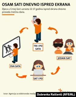 Podaci pokazuju da djeca u Crnoj Gori u prosjeku osam sati dnevno provode ispred nekog ekrana, a većina za poslednjih 12 mjeseci nije bila nijednom u pozorištu, bioskopu, na koncertu ili na sportskom događaju. Stručnjaci poručuju da su podaci alarmantni jer ukazuju na značajno obrazovno i kulturno siromaštvo djece, i na činjenicu da roditelji djeci ne posvećuju dovoljno pažnje.