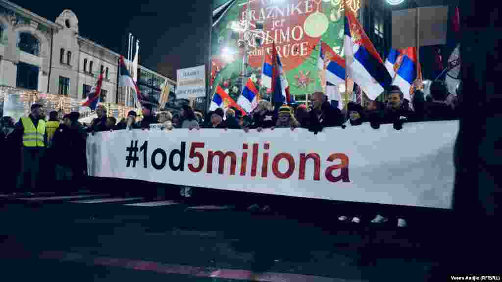 Građani Beograda okupili su se po četvrti put na protestu "Stop krvavim košuljama" ili "1 od 5 miliona", slogan nastao kao reakcija na izjavu predsednika Srbije Aleksandra Vučića da neće ispuniti nijedan zahtev organizatora protesta.
