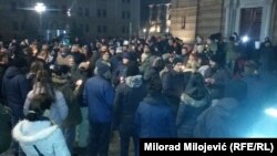Banjalučka policija naredila je večeras građanima da se raziđu iz porte crkve Hrista Spasitelja u centru grada, gde su došli da, zajedno sa Suzanom Radanović, majkom ubijenog Davida Dragičevića, zapale sveće za njenog sina.