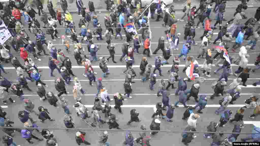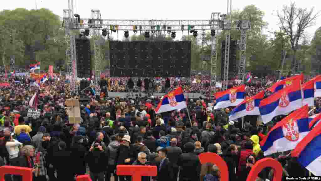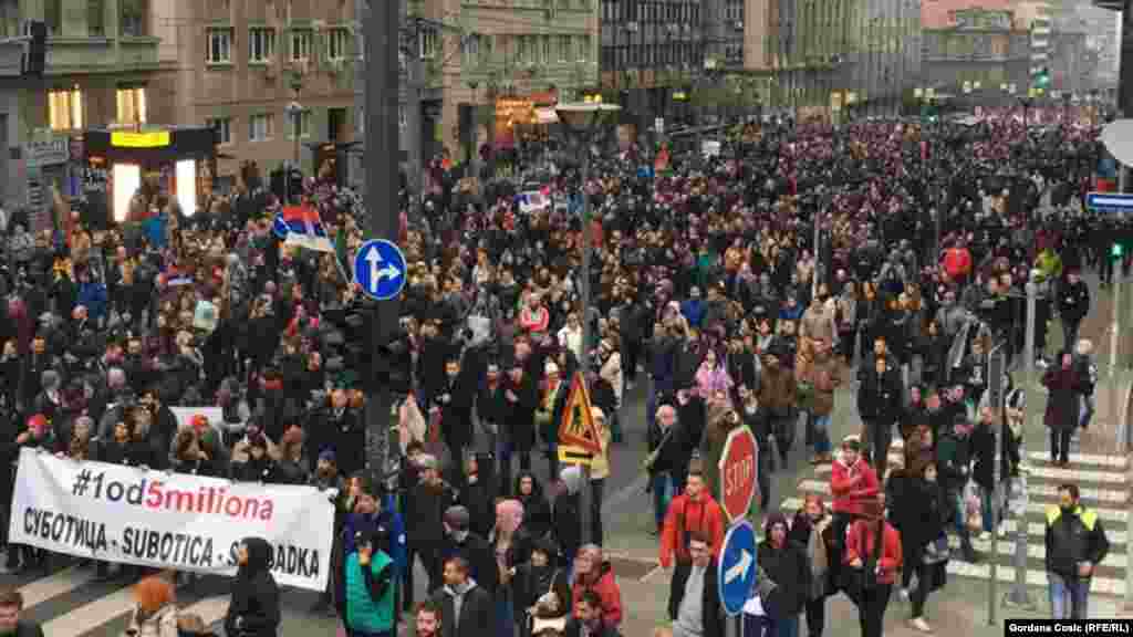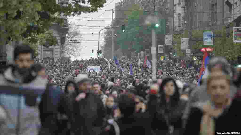 Na protestu opozicije u Beogradu u subotu su izneti zahtevi za formiranje zajedničke komisije vlasti i opozicije za definisanje fer izbornih uslova, izbor novog sastava Regulatornog tela za elektronske medije i izbor tehničkog i uređivačkog tima javnih servisa. Na bini ispred Skupštine Srbije građanima su se obraćale javne ličnosti, nakon čega su demonstratni krenuli u protestnu šetnju centrom Beograda.