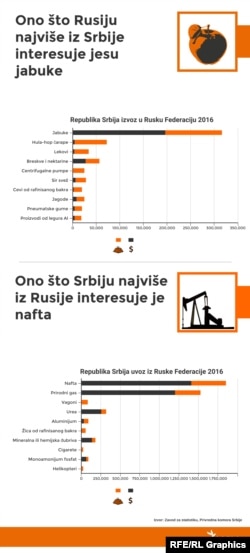 Ukupna robna razmena Srbije sa EAEU u 2018. godini iznosila je 3,4 milijarde dolara, od toga samo sa Rusijom 3 milijarde, pokazuju podaci Ministarstva trgovine.
