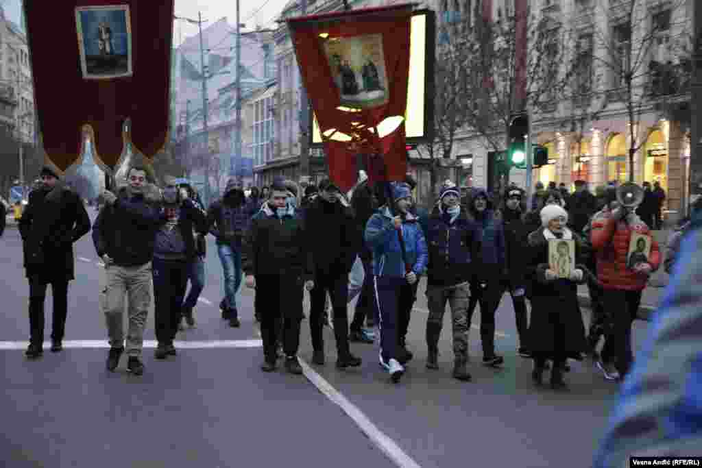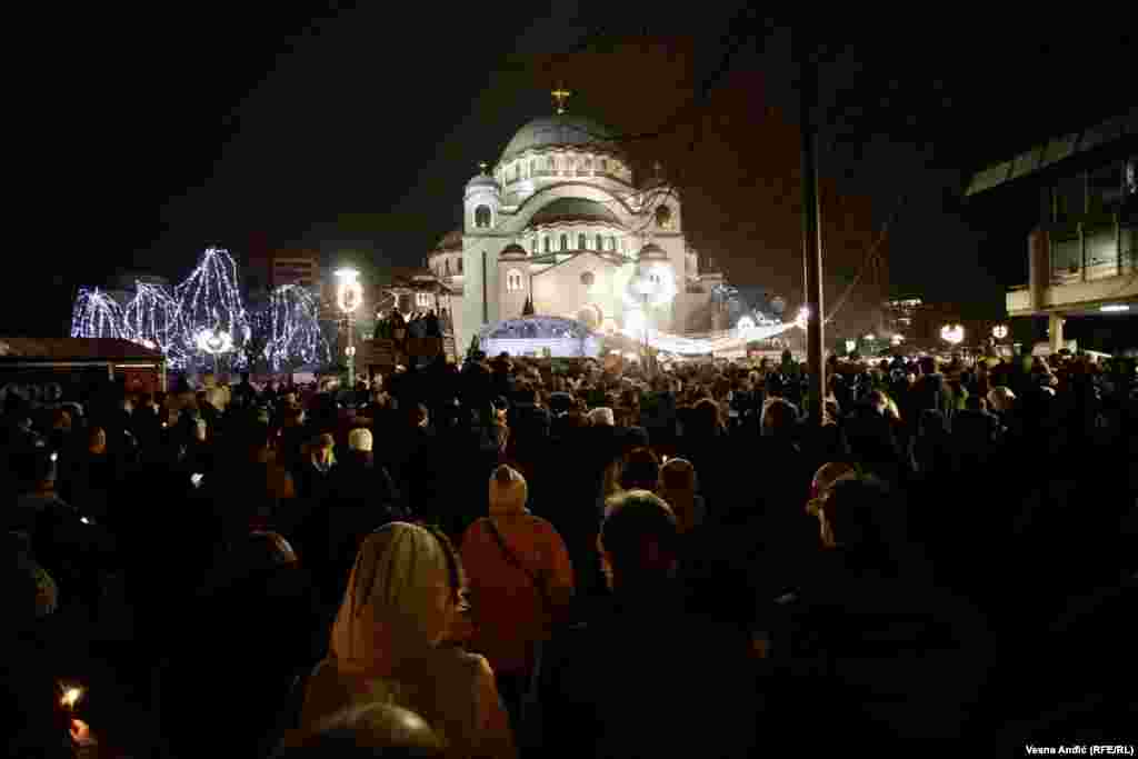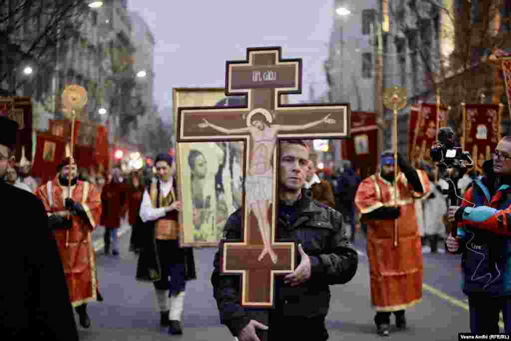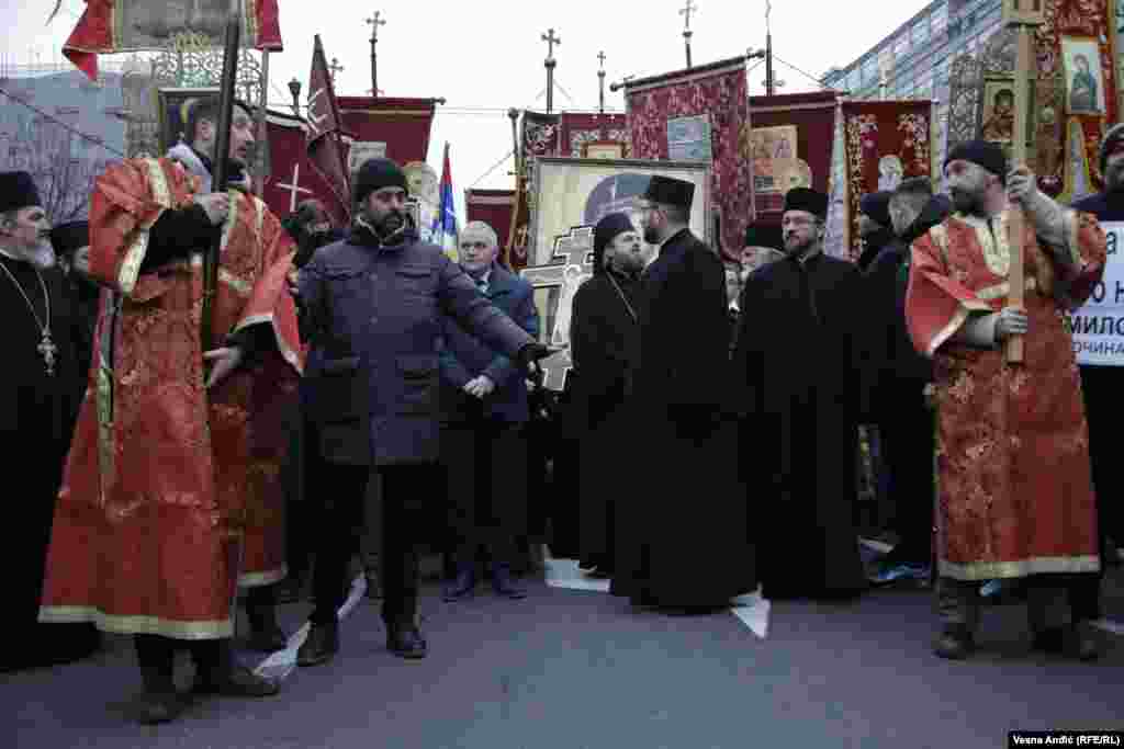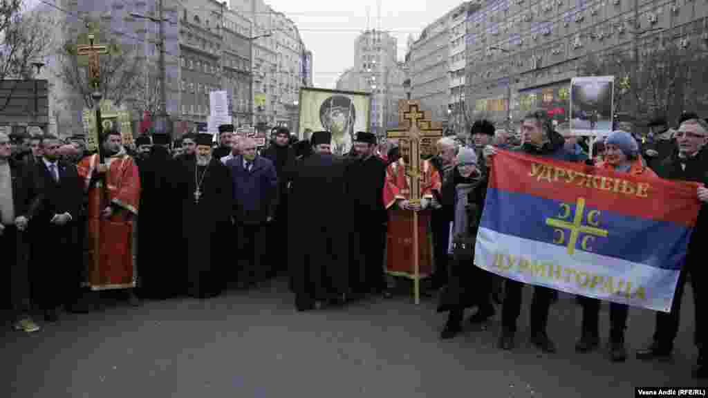 Više stotina građana krenulo je u litiji oko 16 časova sa Terazija u Beogradu ka Hramu svetog Save gde će biti održan moleban povodom događaja u Crnoj Gori, nakon usvajanja Zakona o slobodi veroispovesti. Okupljeni nose crkvene i državne zastave, ikone i transparente na kojima piše "Bez Kosova smo kao čovek bez srca" i "Ništa im nije sveto - Milo zločinac".