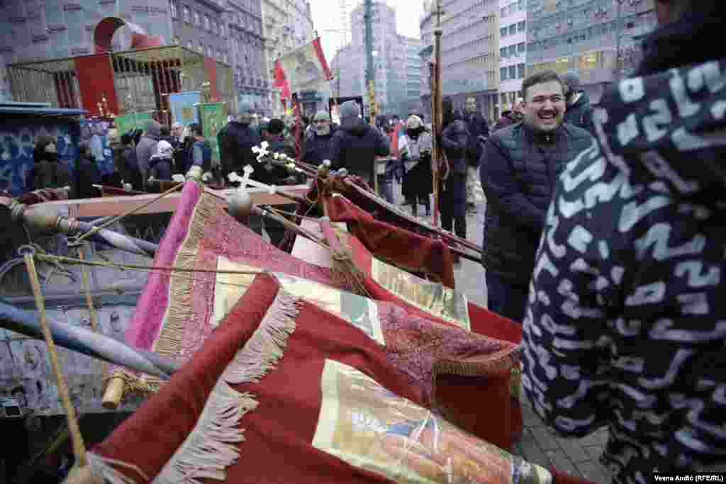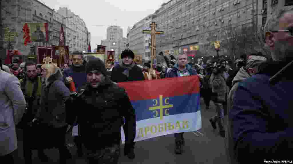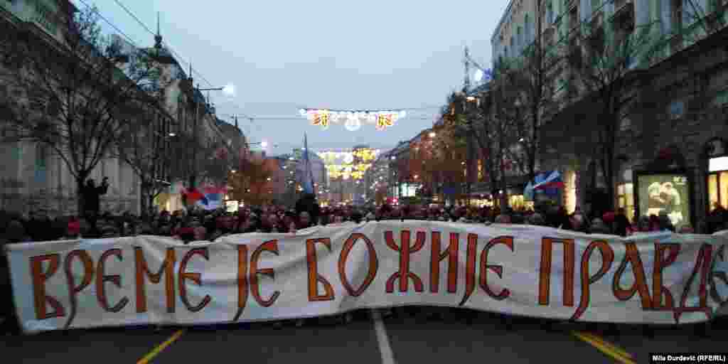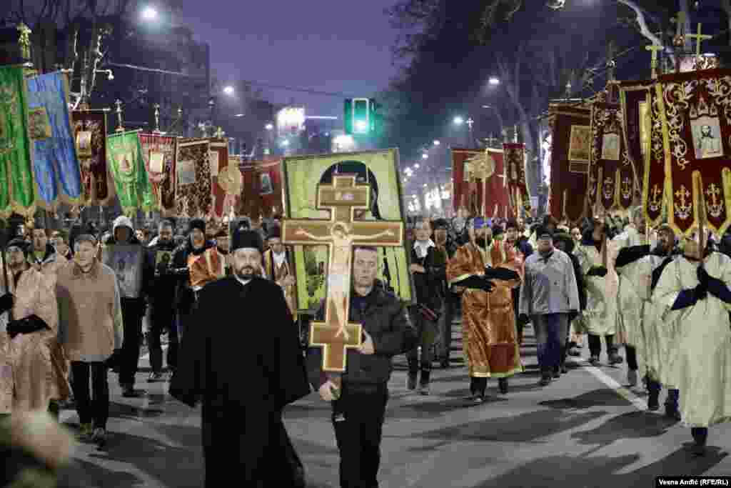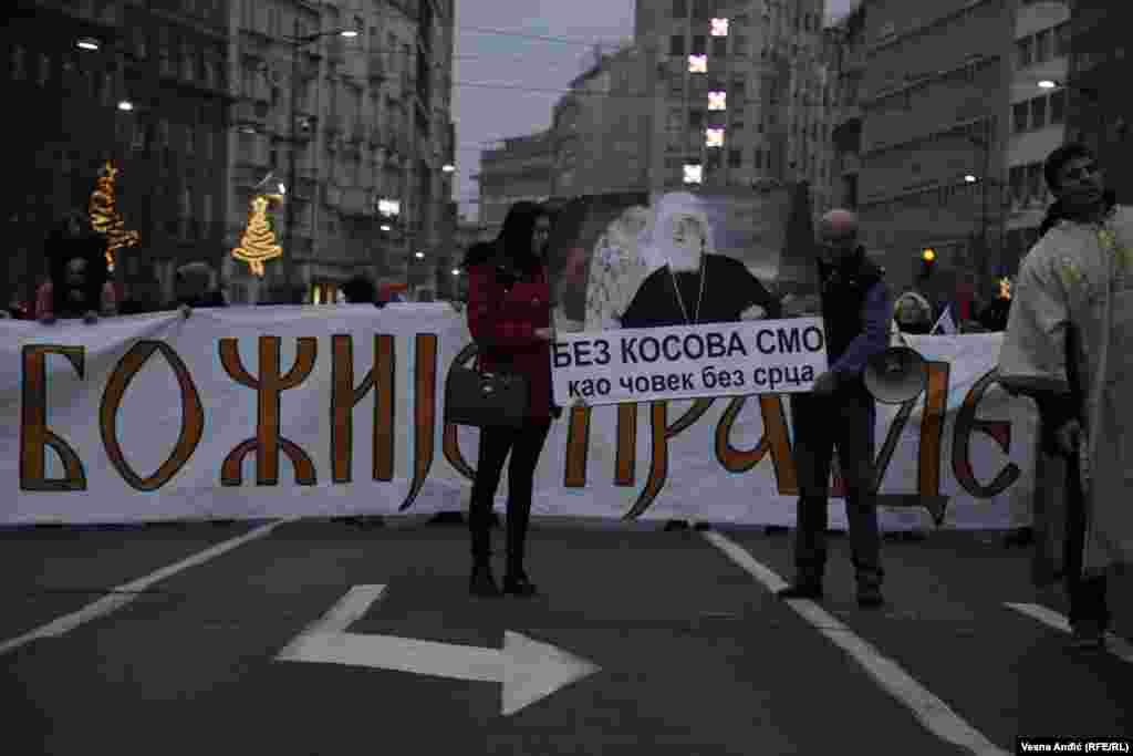 Više stotina građana krenulo je u litiji oko 16 časova sa Terazija u Beogradu ka Hramu svetog Save gde će biti održan moleban povodom događaja u Crnoj Gori, nakon usvajanja Zakona o slobodi veroispovesti. Okupljeni nose crkvene i državne zastave, ikone i transparente na kojima piše "Bez Kosova smo kao čovek bez srca" i "Ništa im nije sveto - Milo zločinac".