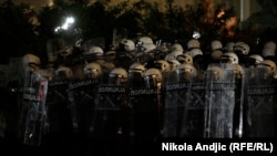 Dva sata kasnije, oko 23 časa, demonstranti su policiju koja je štitila zgradu Skupštine zasuli kamenicama, bakljama, petardama i topovskim udarima.